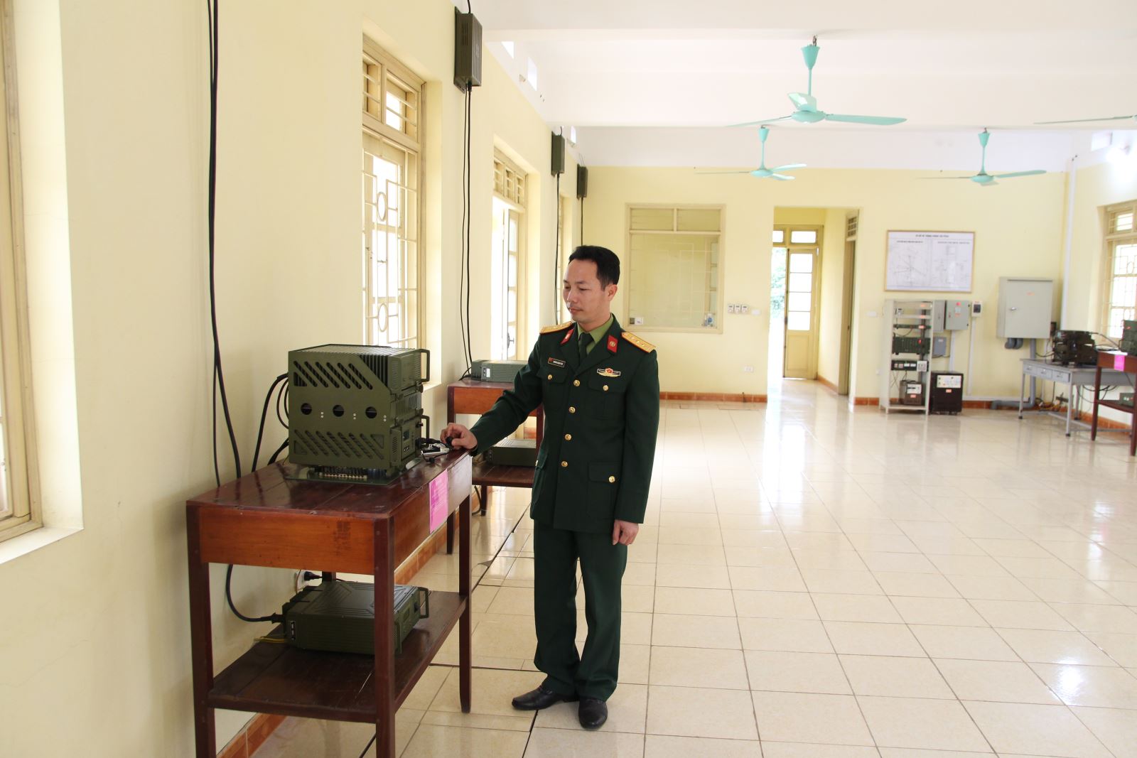 Thượng úy QNCN Trương Mạnh Thái kiểm tra thiết bị.