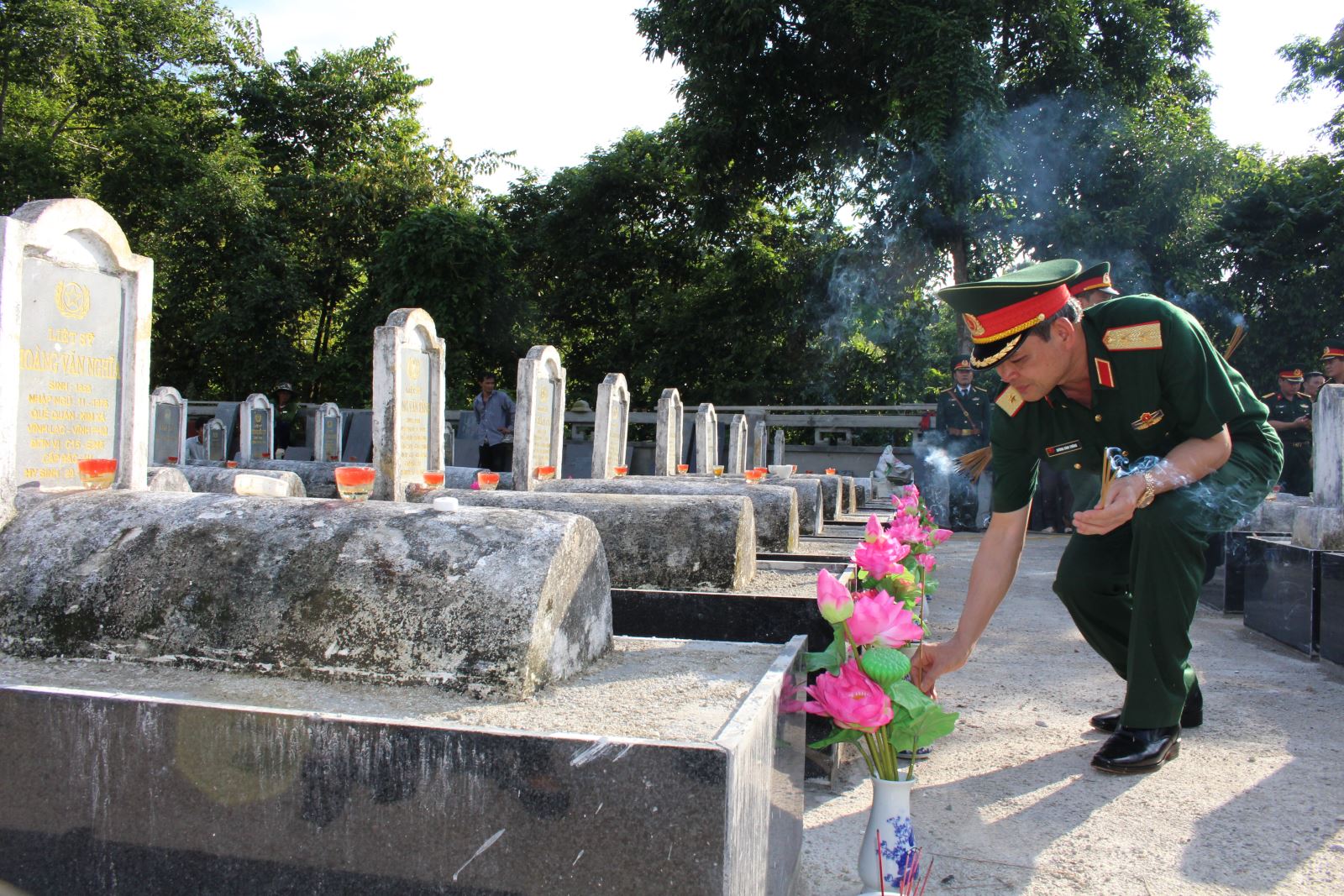 Đoàn công tác của Bộ Tư lệnh Quân khu dâng hương tại nghĩa trang liệt sỹ huyện Hà Quảng, tỉnh Cao Bằng.