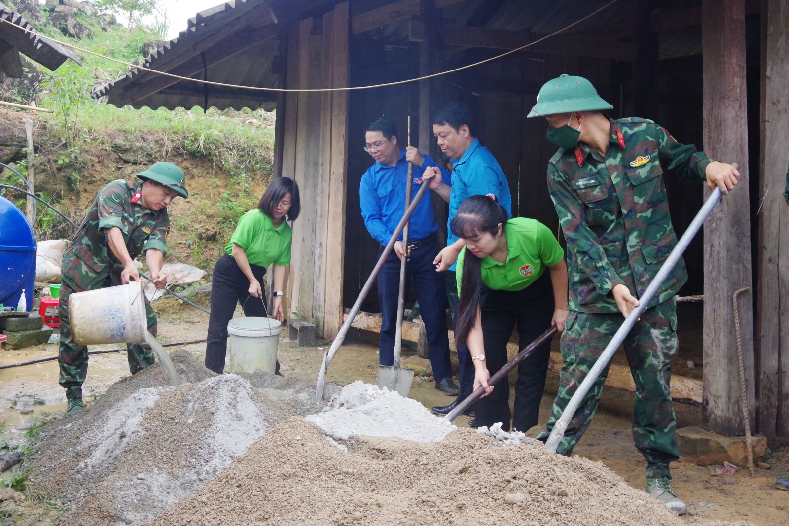 Cán bộ, chiến sĩ Lữ đoàn Thông tin 601 tham gia làm công tác dân vận tại xã Văn Lăng (Đồng Hỷ, Thái Nguyên).