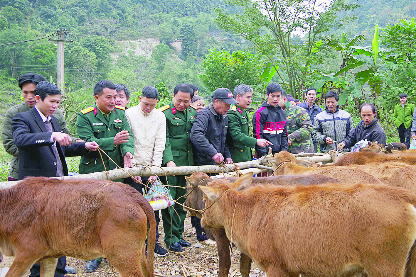 Đoàn KT-QP 799 trao tặng bò giống cho nhân dân trong vùng dự án.