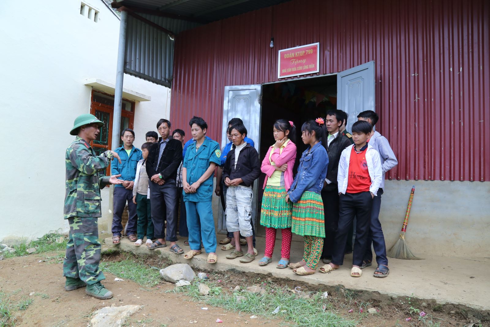 Cán bộ Đoàn KT-QP 799 tuyên truyền đường lối, chủ trương, chính sách của Đảng và Nhà nước đến đồng bào dân tộc thiểu số.