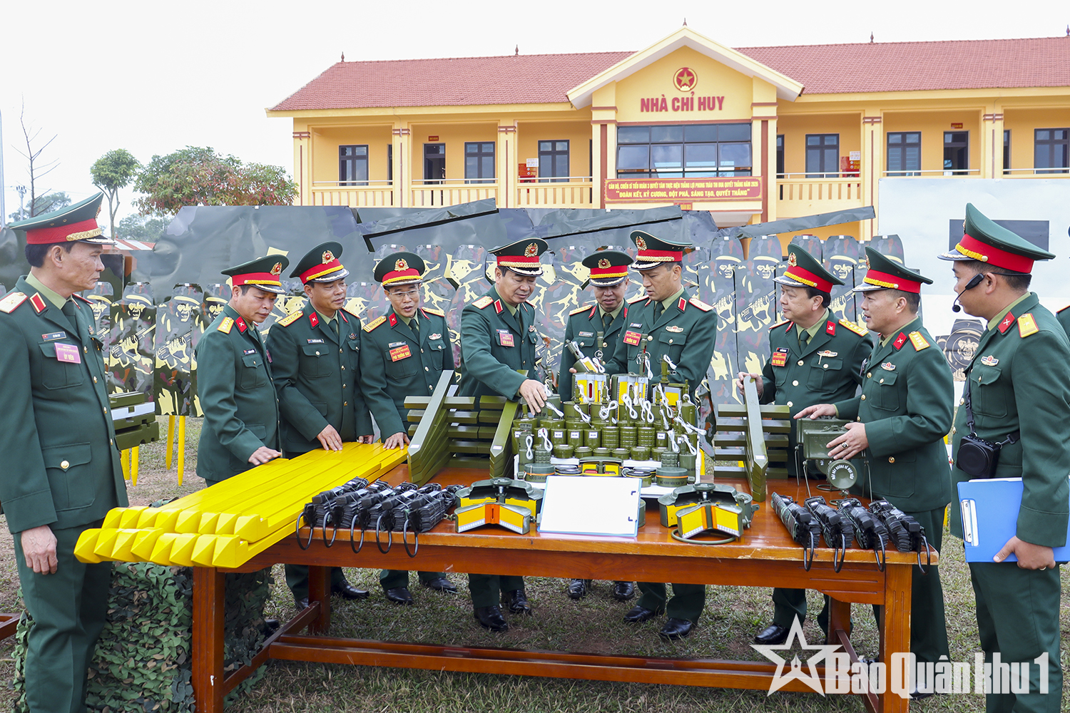 Trung tướng Trương Mạnh Dũng, Tư lệnh Quân khu cùng các đồng chí trong Ban Tổ chức tập huấn cán bộ Quân khu năm 2026 kiểm tra mô hình, trang thiết bị huấn luyện. Ảnh: ĐỨC THÚY