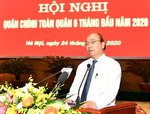Phát biểu tại hội nghị, Thủ tướng Nguyễn Xuân Phúc điểm lại tình hình kinh tế - xã hội 6 tháng đầu năm 2020 của đất nước, trong đó có thành công bước đầu trong phòng, chống dịch Covid-19. Thủ tướng nhấn mạnh, kết quả đó có đóng góp quan trọng của Quân đội nhân dân Việt Nam.