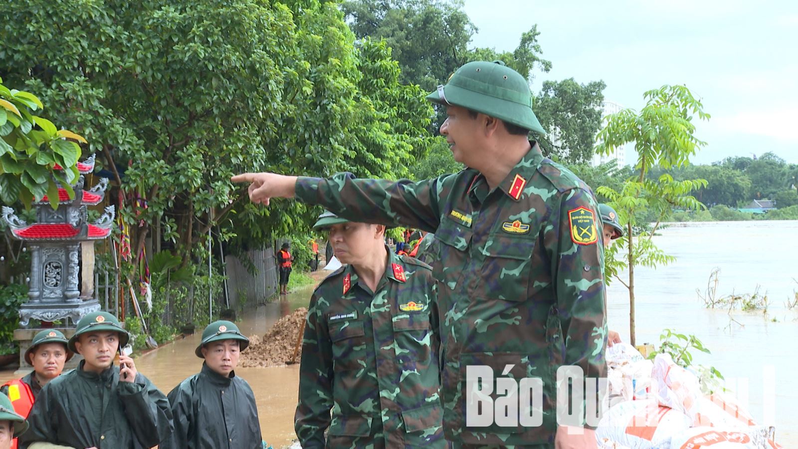 Thiếu tướng Trương Mạnh Dũng, Tư lệnh Quân khu 1 trực tiếp chỉ đạo khắc phục sự cố đê Sông Cầu, tại Thái Nguyên.