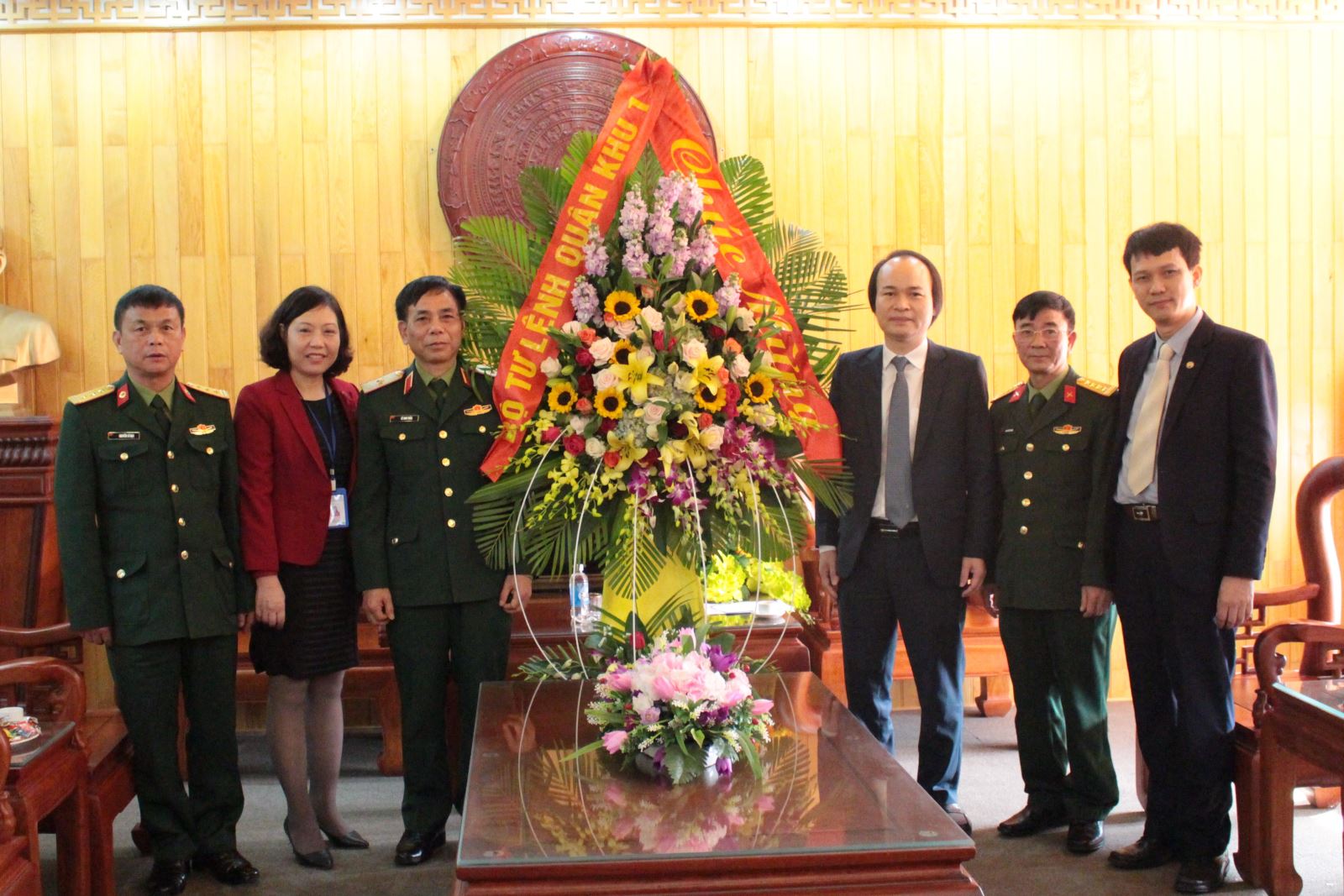 Đoàn công tác tặng hoa chúc mừng phòng Quân Y (Cục Hậu cần).