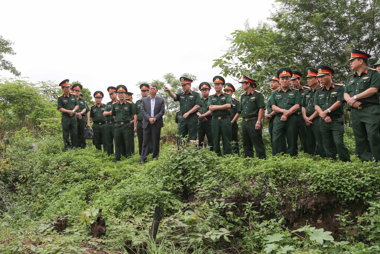 Trung tướng Nguyễn Hồng Thái, Ủy viên Trung ương Đảng, Tư lệnh Quân khu kiểm tra thực địa khu vực thực binh diễn tập.