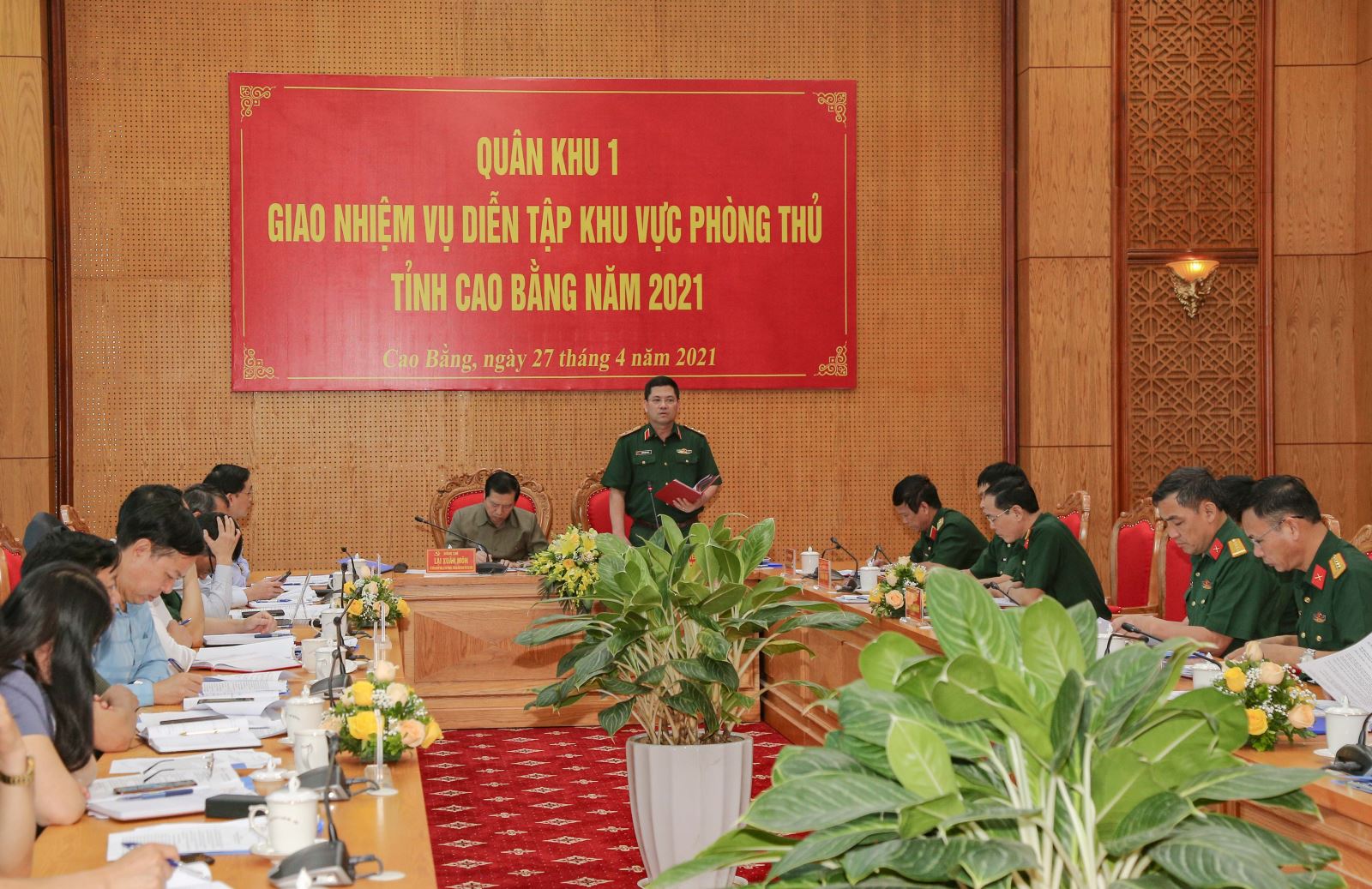 Sáng 27-4, tại Tỉnh ủy Cao Bằng, Quân khu tổ chức hội nghị giao nhiệm vụ diễn tập khu vực phòng thủ (KVPT) tỉnh Cao Bằng năm 2021. Trung tướng Nguyễn Hồng Thái, Ủy viên Trung ương Đảng, Tư lệnh Quân khu và đồng chí Lại Xuân Môn, Ủy viên Trung ương Đảng, Bí thư Tỉnh ủy, Trưởng ban chỉ đạo diễn tập KVPT tỉnh Cao Bằng đồng chủ trì hội nghị.