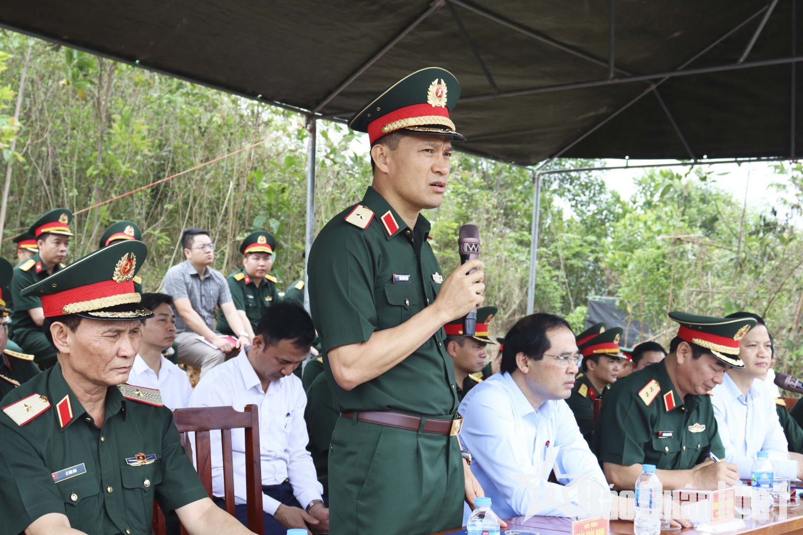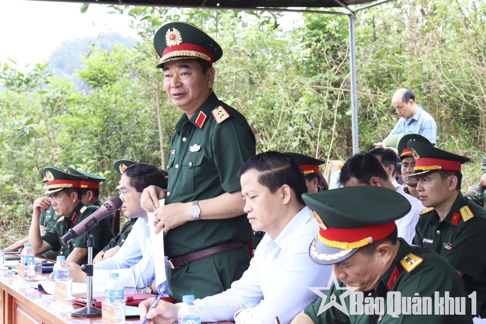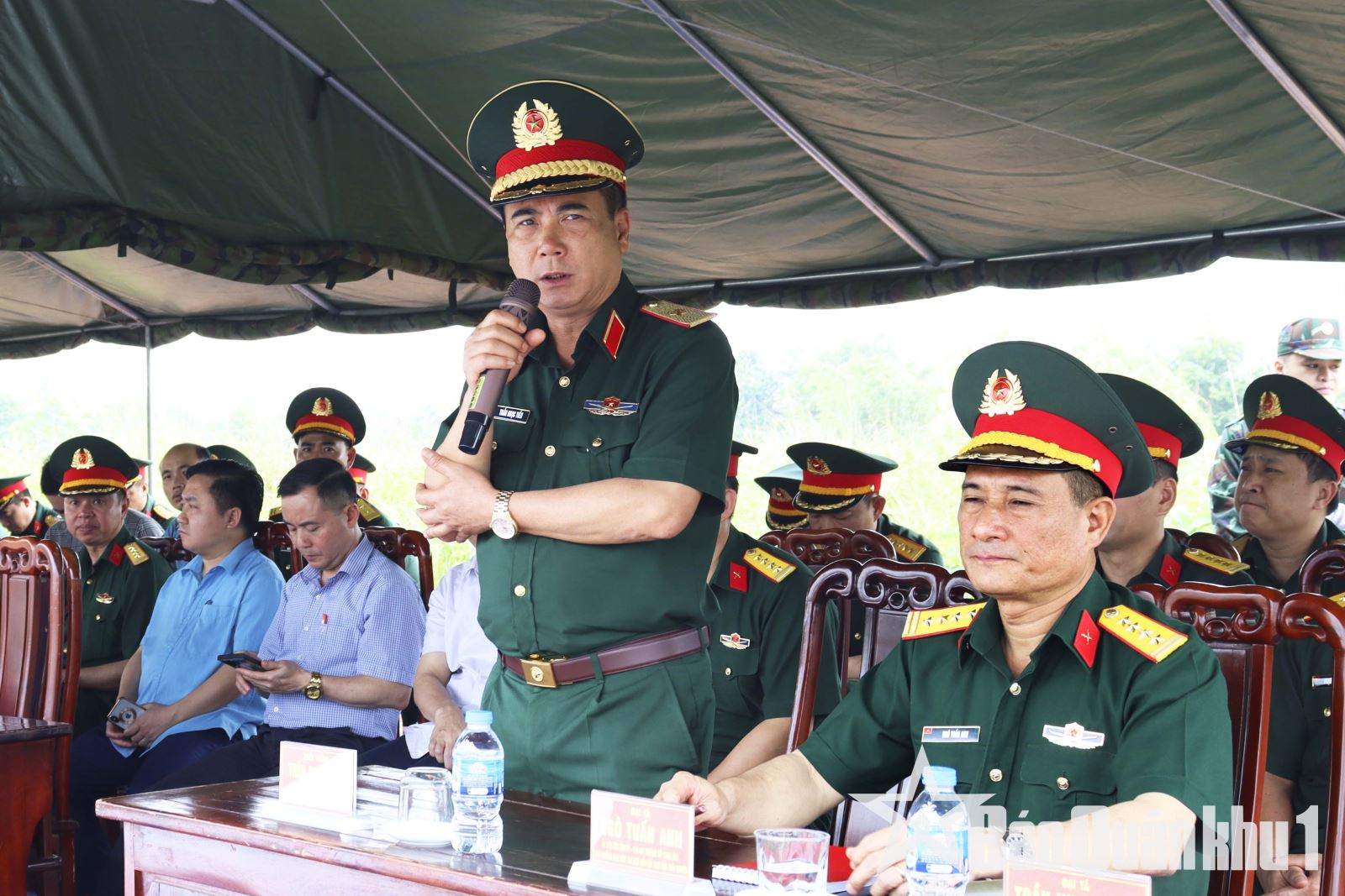 Thiếu tướng Trần Ngọc Tiến, Phó tham mưu trưởng Quân khu phát biểu sau khi đoàn công tác kiểm tra khu vực diễn tập thực hành thiết quân luật.