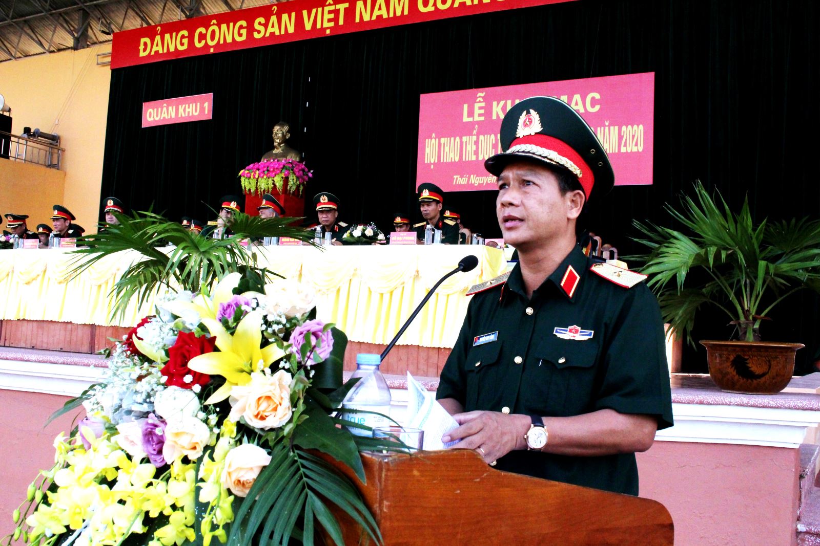 Thiếu tướng Nguyễn Huy Cảnh, Phó tư lệnh, Tham mưu trưởng Quân khu phát biểu khai mạc Hội thao TDTT quốc phòng Quân khu năm 2020.
