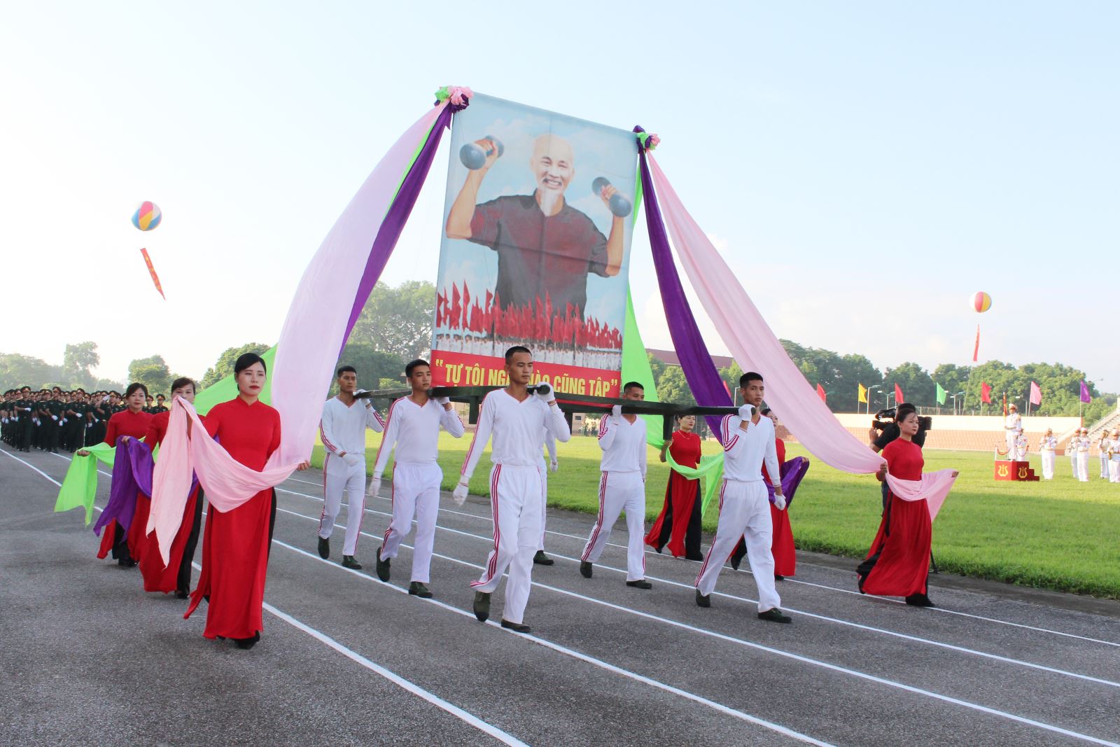 Khối rước ảnh Bác trong Lễ khai mạc Hội thao TDTT quốc phòng Quân khu năm 2020.