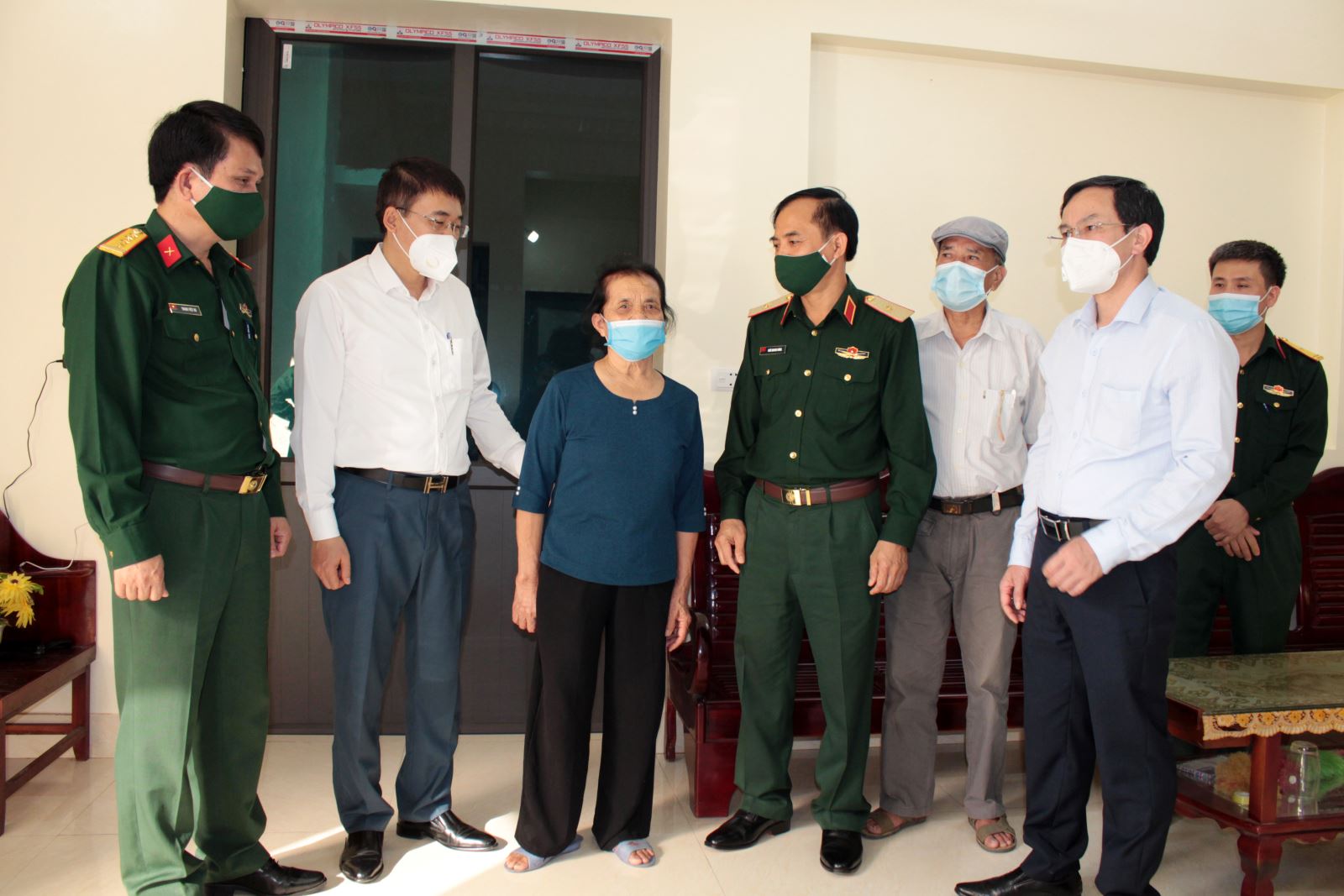 Thiếu tướng Ngô Quang Hưng, Phó chủ nhiệm chính trị Quân khu trao quà của Bộ tư lệnh Quân khu tặng gia đình bà Tạ Thị Xanh.