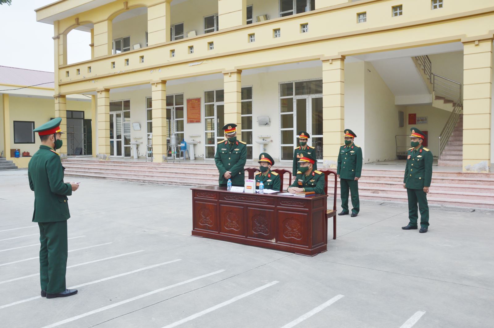 Đoàn công tác kiểm tra nội dung tập huấn điều lệnh đội ngũ.