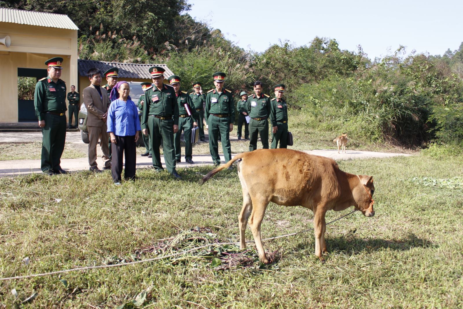 Đoàn công tác kiểm tra Dự án cấp bò sinh sản cho nhân dân tôn Bản Vàng, xã Cao Lâu, huyện Cao Lộc, Lạng Sơn.