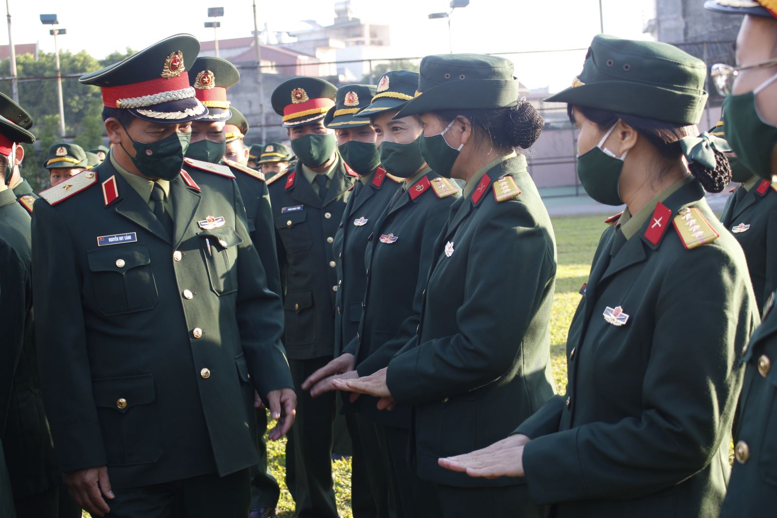 Thiếu tướng Nguyễn Huy Cảnh, Phó tư lệnh, Tham mưu trưởng Quân khu kiểm tra lễ tiết tác phong quân nhân tại Bộ CHQS tỉnh Thái Nguyên.