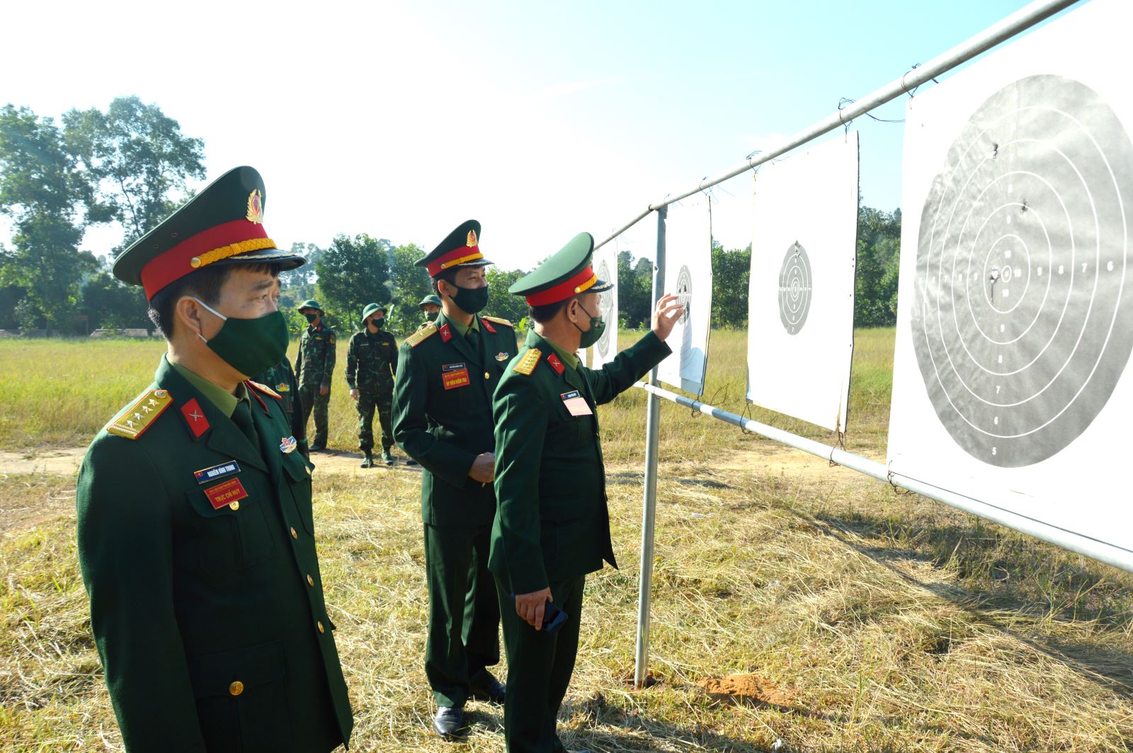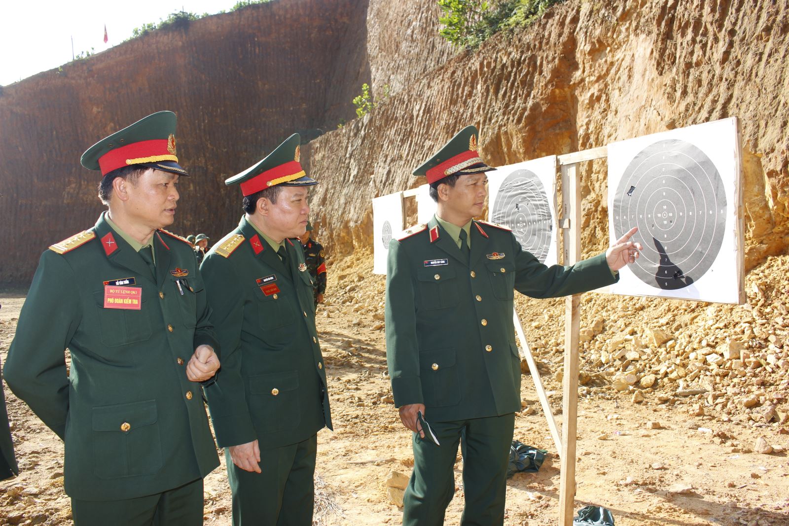 Thiếu tướng Nguyễn Huy Cảnh, Phó tư lệnh, Tham mưu trưởng Quân khu kiểm tra kết quả bắn súng K54 của sĩ quan, QNCN Bộ CHQS tỉnh Thái Nguyên.