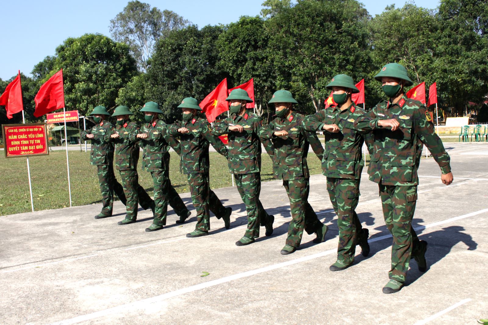 Thực hành động tác điều lệnh đội ngũ từng người không có súng tại Trung đoàn 141, Sư đoàn 3.