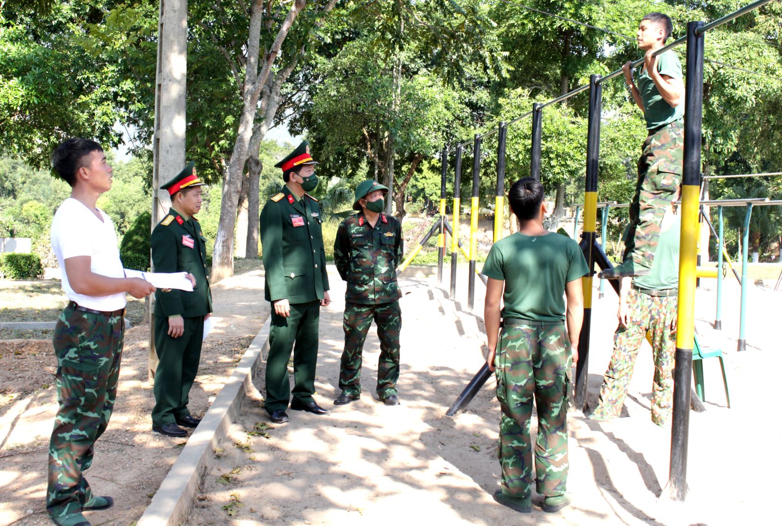 Đại tá Trần Hùng Cương, Phó Tham mưu trưởng Quân khu, Phó trưởng đoàn kiểm tra thể lực đối với chiến sĩ Trung đoàn 141, Sư đoàn 3.