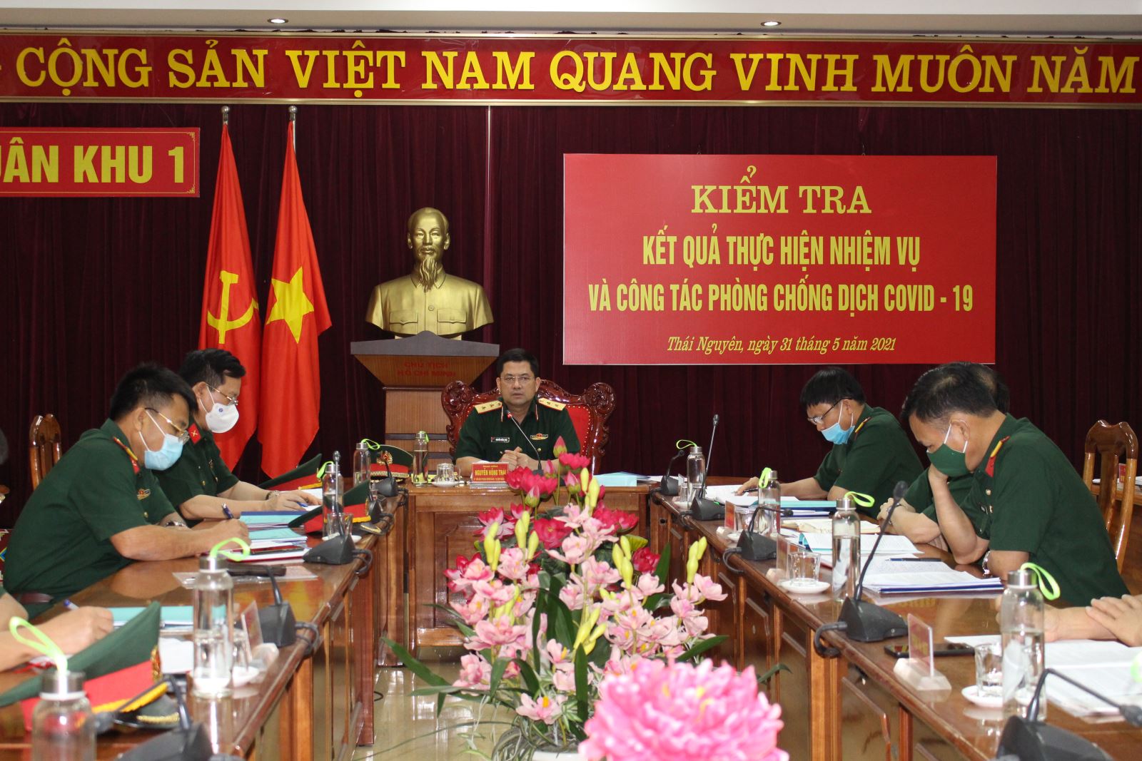 Ngày 31-5, đoàn công tác Quân khu do Trung tướng Nguyễn Hồng Thái, Ủy viên Trung ương Đảng, Tư lệnh Quân khu làm trưởng đoàn đã kiểm tra kết quả thực hiện nhiệm vụ 6 tháng đầu năm và công tác phòng, chống dịch Covid-19 tại Bộ CHQS tỉnh Thái Nguyên và Trường Quân sự Quân khu.