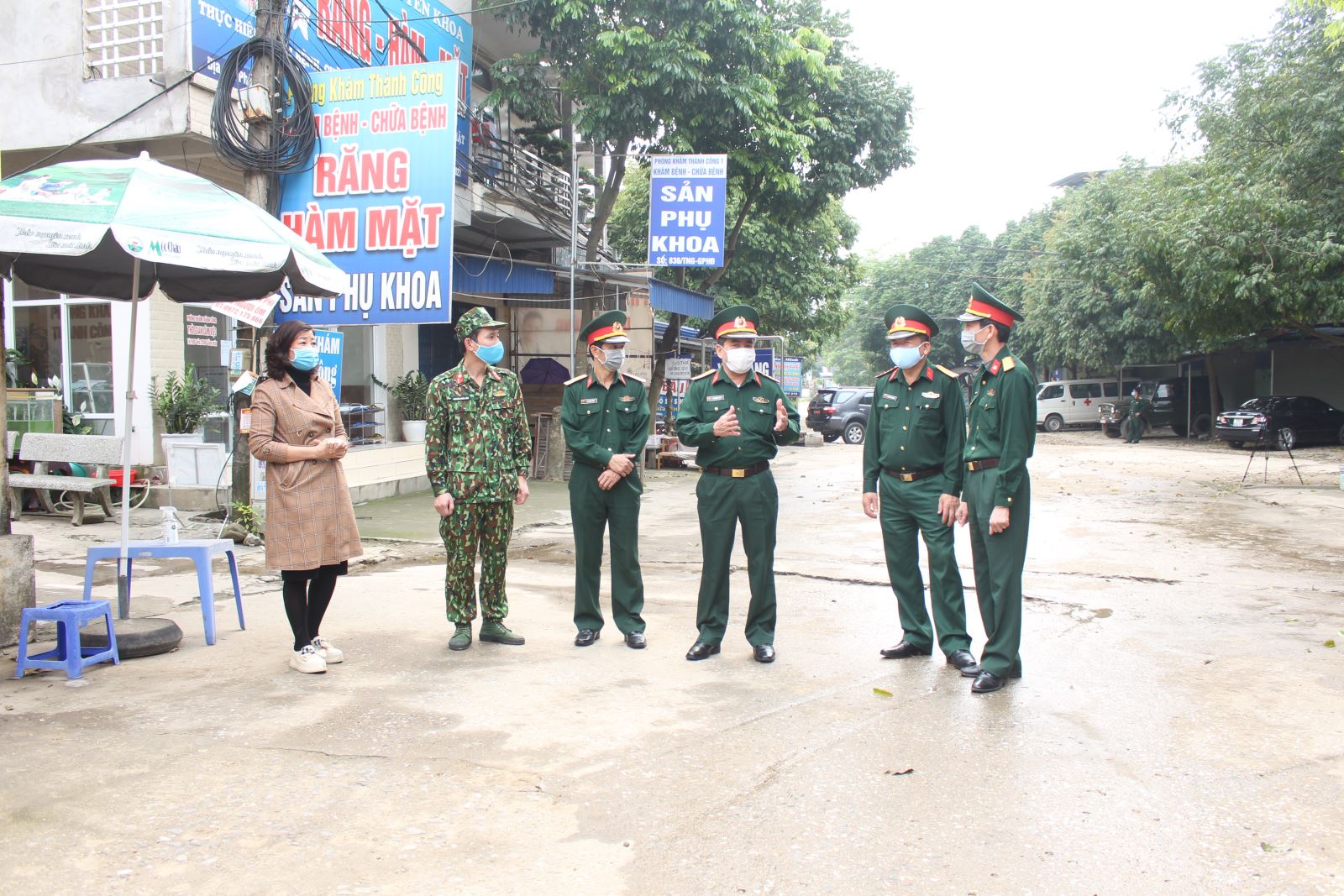 Ban chỉ đạo Quân khu cùng lãnh đạo Bệnh viện A Thái Nguyên kiểm tra công tác phun khử trùng.