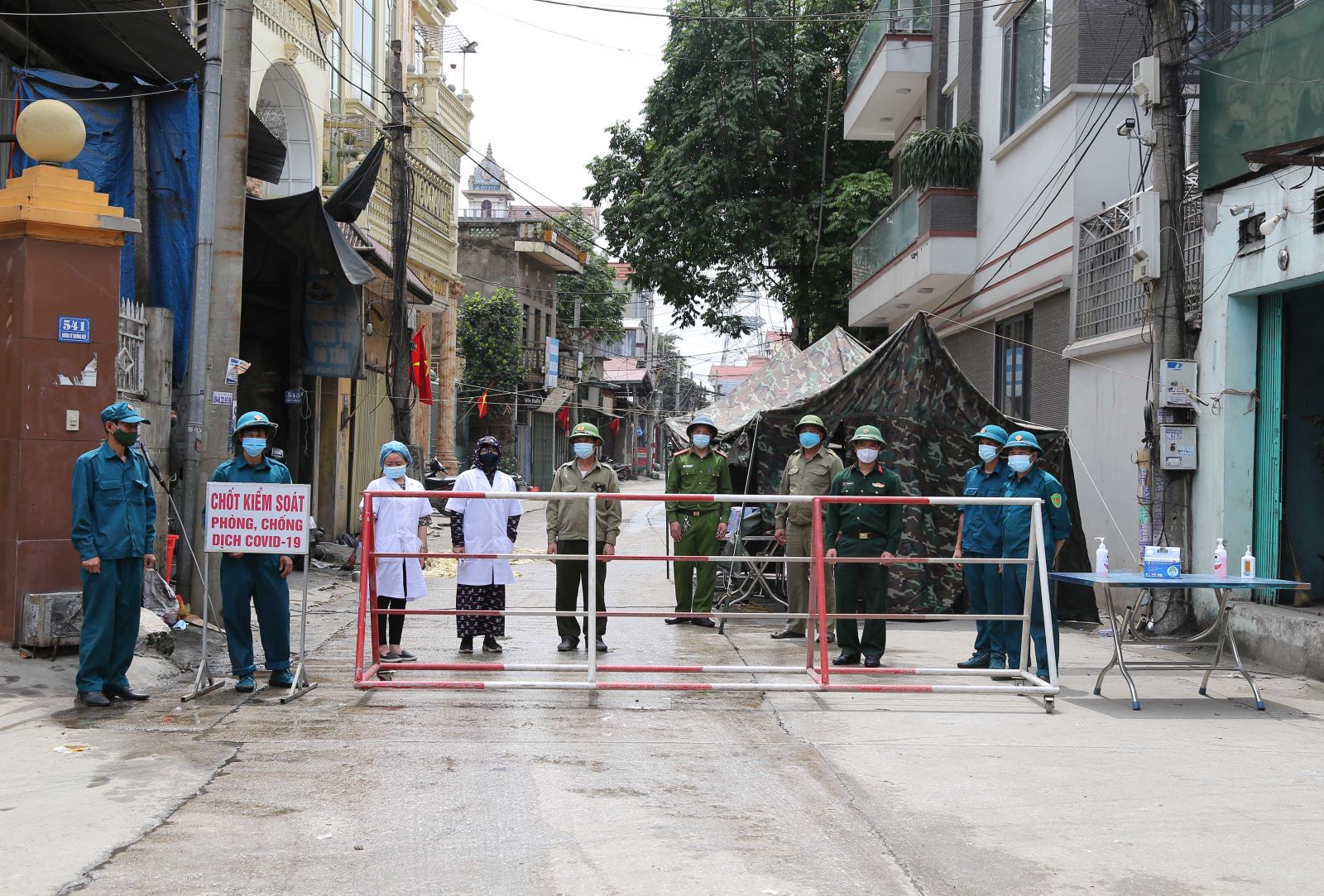Chốt phong tỏa tại địa điểm xóm 5 và xóm 6, khu phố Đa Hội, phường Châu Khê, thị xã Từ Sơn, nơi có ca bệnh số 3021.