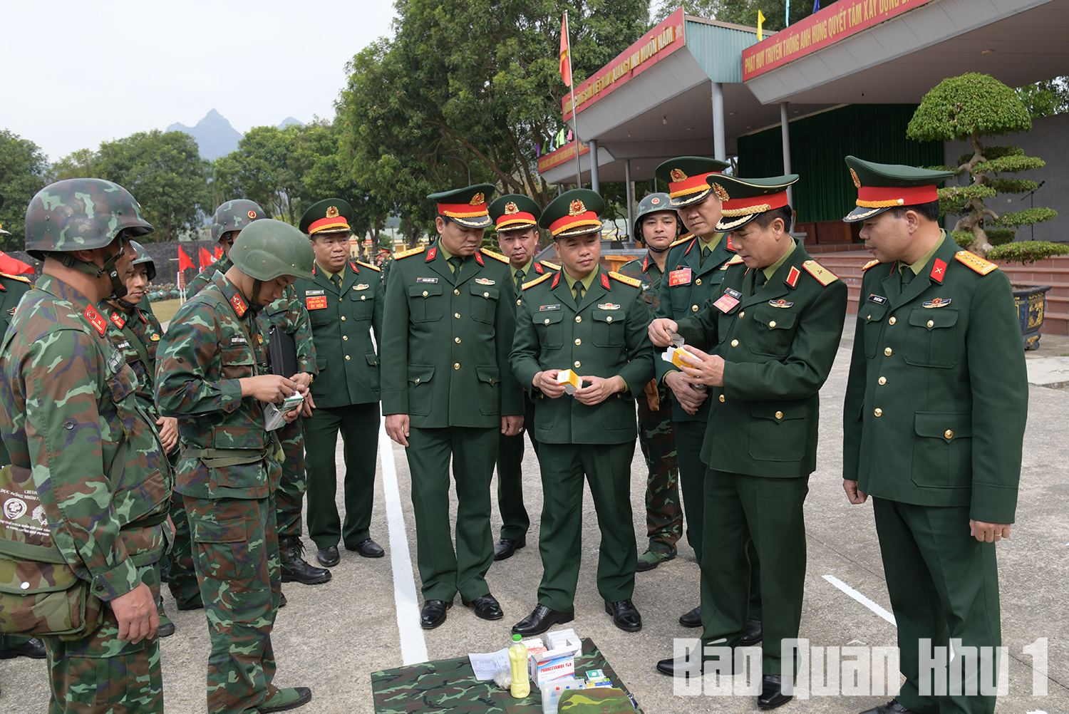 Thiếu tướng Trần Ngọc Tiến, Phó Tham mưu trưởng Quân khu cùng đoàn công tác kiểm tra nội dung bảo đảm vật chất phục vụ nhiệm vụ SSCĐ tại Trung đoàn 141 (Sư đoàn 3).