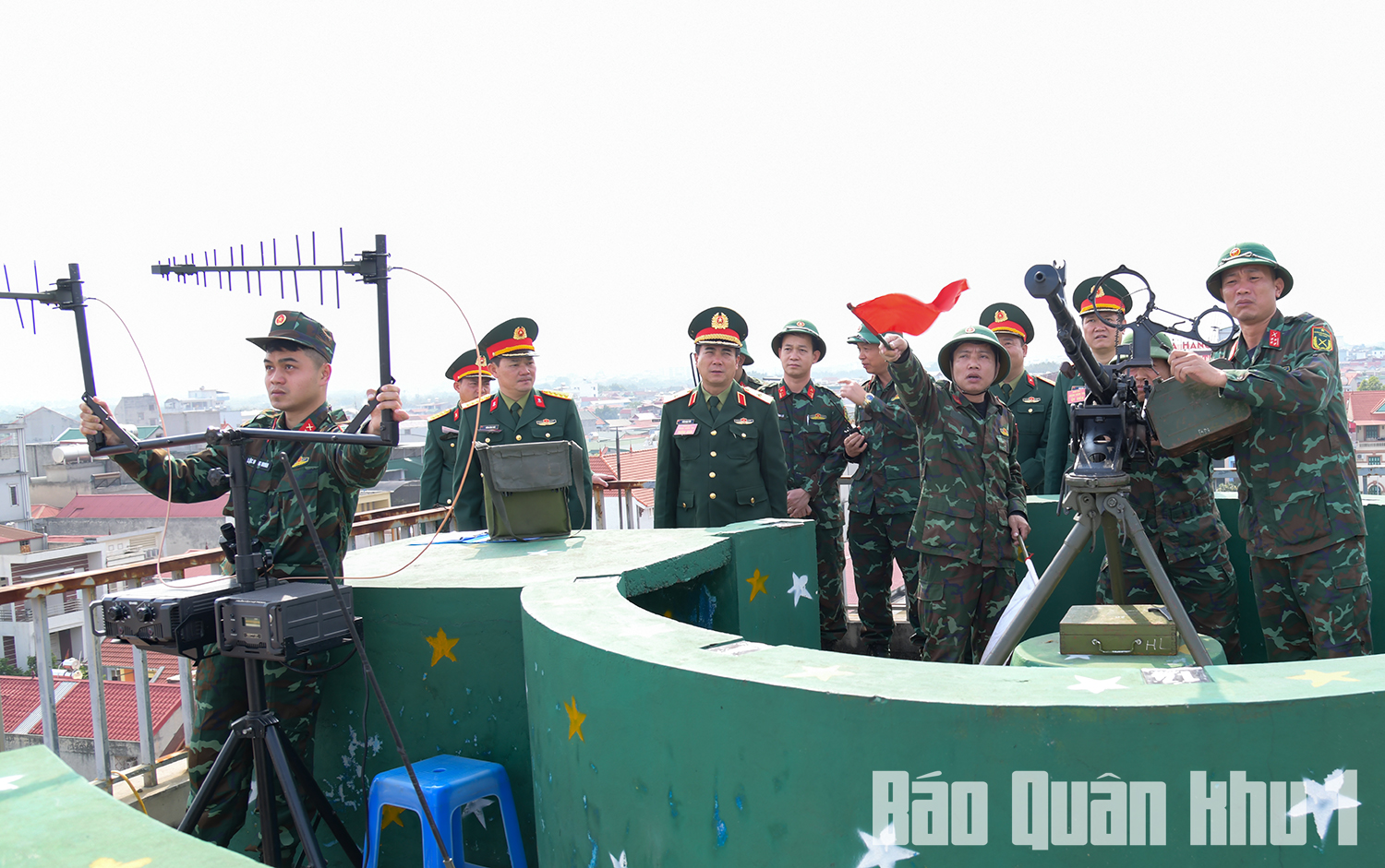 Thiếu tướng Trần Ngọc Tiến, Phó Tham mưu trưởng Quân khu cùng đoàn công tác kiểm tra nội dung thực hành xử trí tình huống bắn máy bay bay thấp và UAV đối với lực lượng phòng không thuộc Bộ CHQS tỉnh Bắc Ninh.