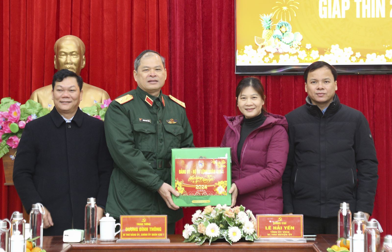 Trung tướng Dương Đình Thông, Bí thư Đảng ủy, Chính ủy Quân khu tặng quà, chúc tết cấp ủy, chính quyền huyện Hà Quảng, tỉnh Cao Bằng.
