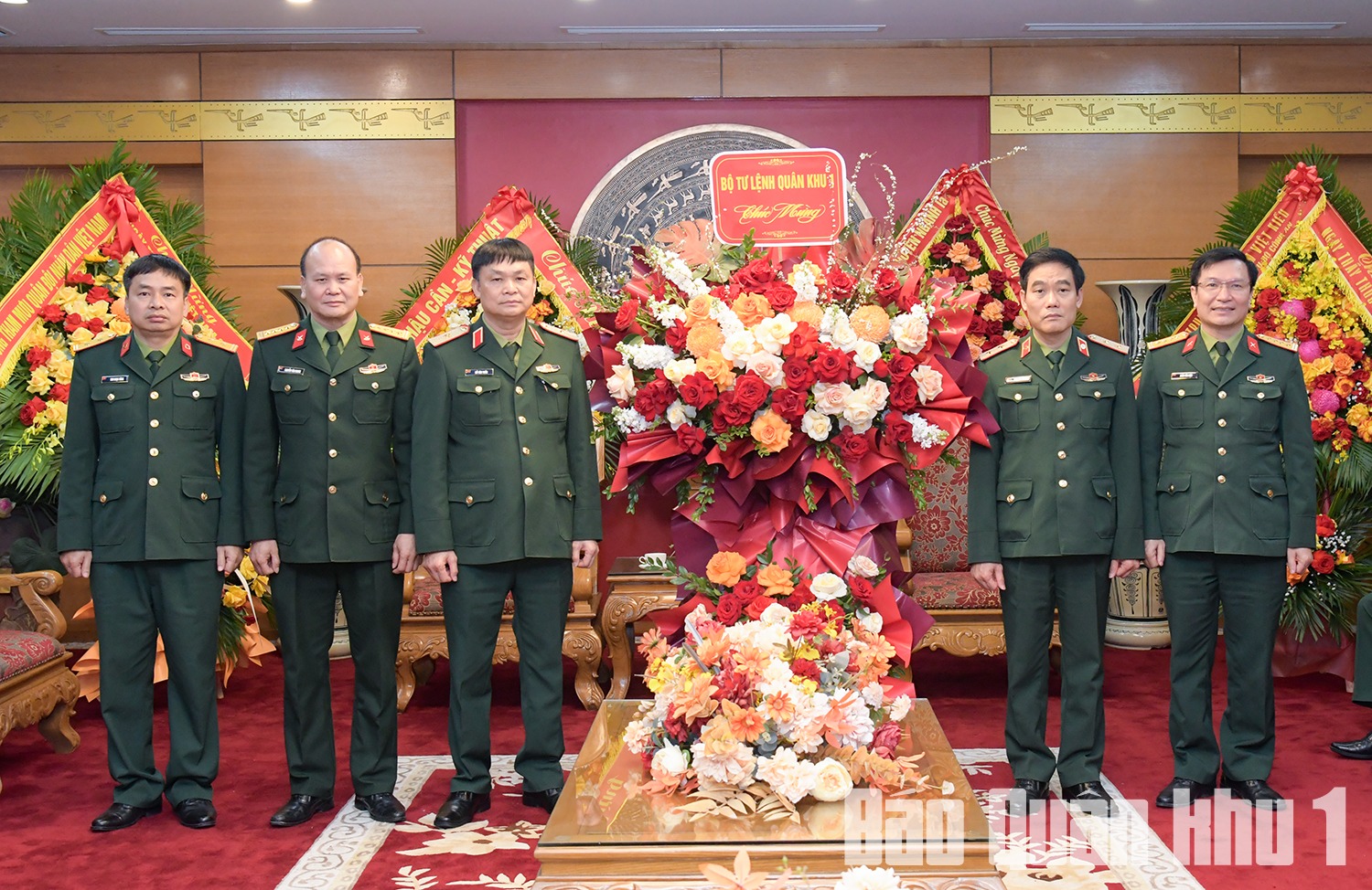Thiếu tướng Đỗ Văn Tuấn, Phó Tư lệnh Quân khu tặng hoa, chúc mừng Ban giám đốc cùng toàn thể đội ngũ thầy thuốc Bệnh viện Quân y 103.