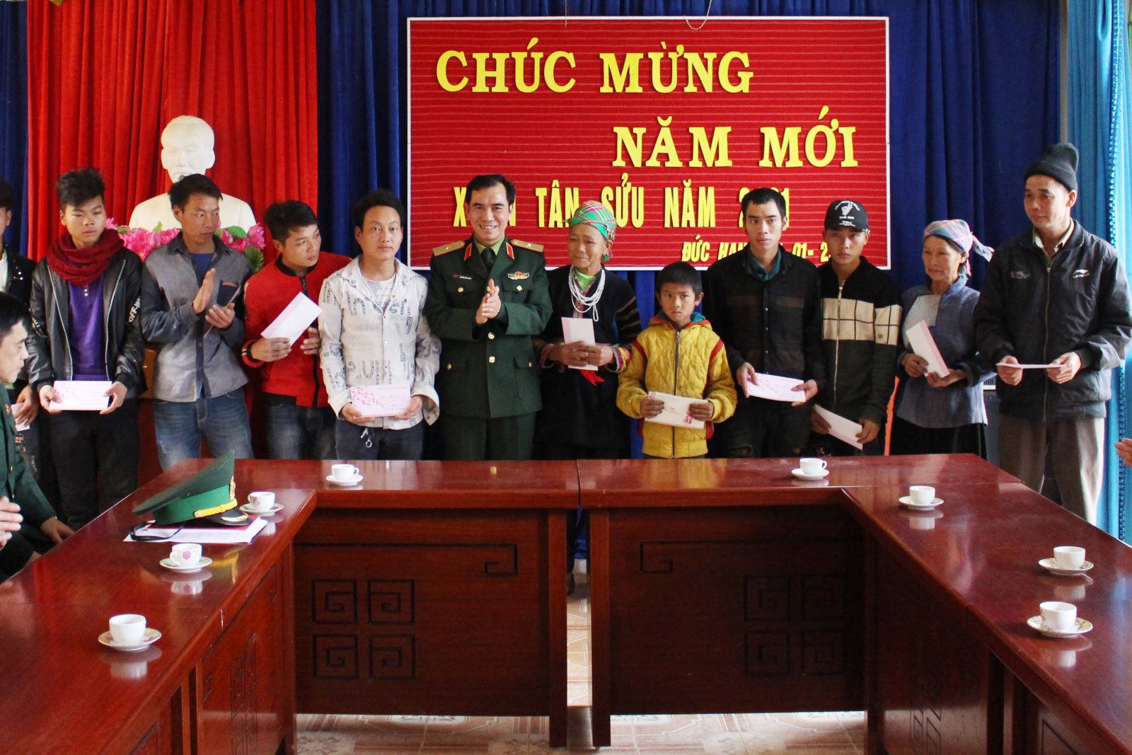 Thiếu tướng Nguyễn Đình Chiêu, Phó chính ủy Quân khu tặng quà chúc Tết cấp ủy, chính quyền xã Đức Hạnh (Bảo Lâm, Cao Bằng).