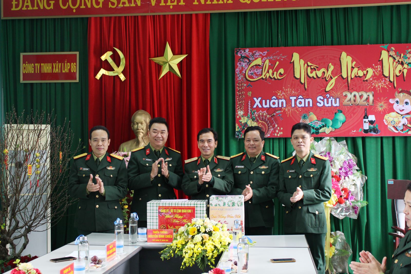Thiếu tướng Nguyễn Đình Chiêu, Phó chính ủy Quân khu tặng quà chúc Tết lãnh đạo công ty 86 (Đoàn KT-QP 799).