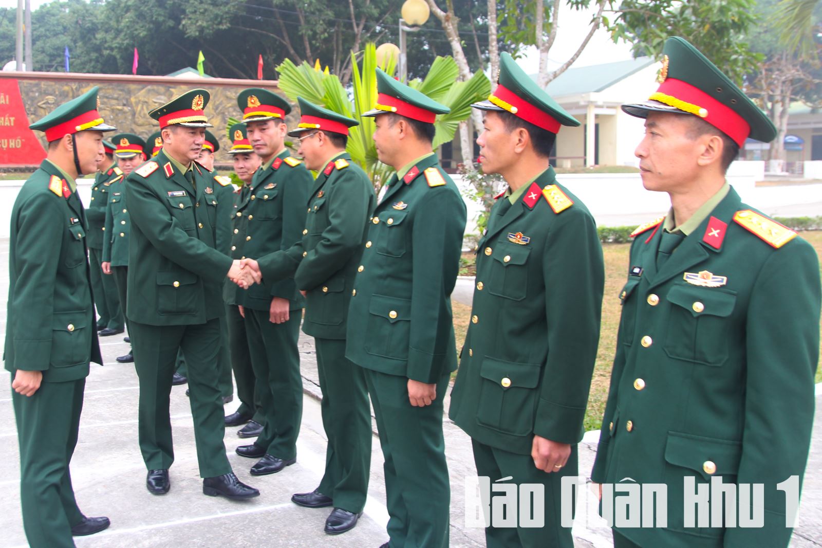 Đảng ủy, Chỉ huy Trung đoàn 246 chào đón Trung tướng La Công Phương, Ủy viên Trung ương Đảng, Bí thư Đảng ủy, Chính ủy Quân khu đến thăm và chúc tết đơn vị.