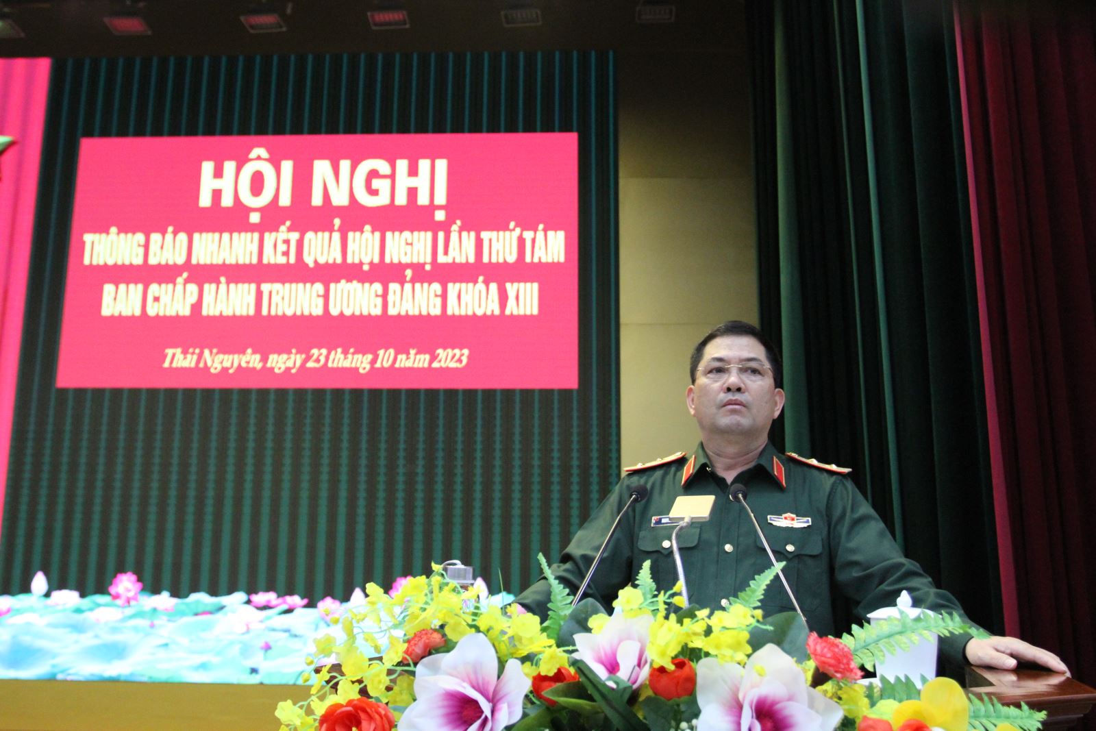 Trung tướng Nguyễn Hồng Thái, Uỷ viên Trung ương Đảng, Tư lệnh Quân khu thông báo nhanh kết quả Hội nghị lần thứ tám BCH Trung ương Đảng khoá XIII.