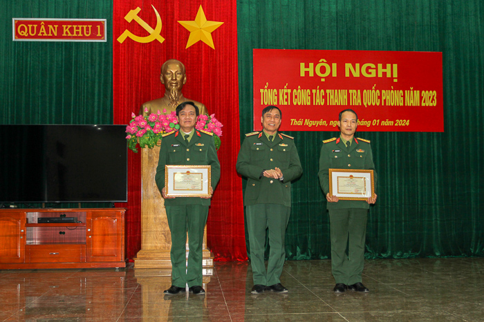 Tại hội nghị, Thiếu tướng Hoàng Văn Hữu, Phó tư lệnh Quân khu trao bằng khen của Bộ Quốc phòng tặng cá nhân và tập thể có thành tích tốt trong công tác thanh tra quốc phòng.