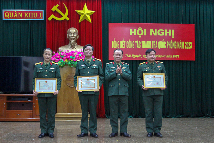 Thiếu tướng Hoàng Văn Năm, Phó tham mưu trưởng Quân khu trao giấy khen của Bộ Quốc phòng tặng các tập thể và cá nhân có thành tích tốt trong công tác thanh tra quốc phòng.