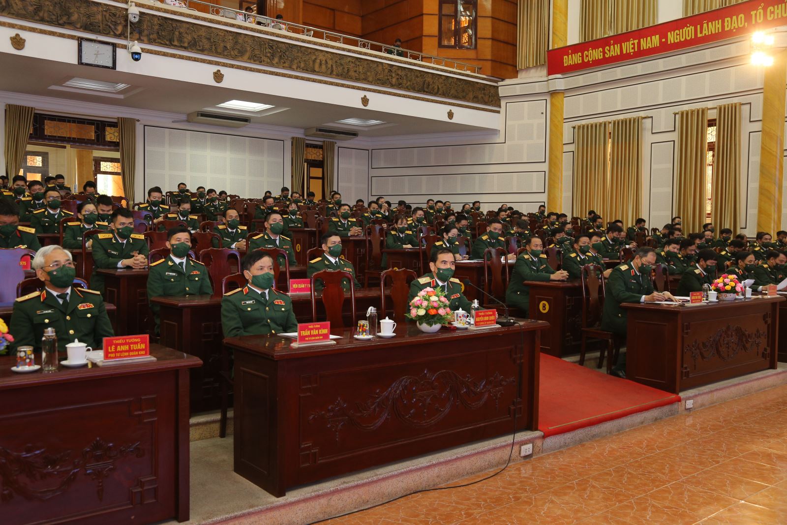 Trung tướng Dương Đình Thông yêu cầu LLVT Quân khu cần phát huy kết quả thực hiện nhiệm vụ quân sự, quốc phòng thời gian qua, nhất là kết quả công tác phòng, chống dịch Covid-19, tiếp tục thực hiện hiệu quả phong trào thi đua “LLVT Quân khu cùng cả nước chung sức đồng lòng, thi đua phòng, chống và chiến thắng đại dịch Covid-19”. Trong đó, cần quán triệt sâu sắc các nghị quyết, chỉ thị, kế hoạch, hướng dẫn của các cấp về công tác phòng, chống dịch bệnh Covid-19, nhất là Nghị quyết số 128 ngày 11/10/2021 của Chính phủ quy định tạm thời “Thích ứng an toàn, linh hoạt, kiểm soát hiệu quả dịch Covid-19”; Chỉ thị số 106 ngày 05/11/2021 của Bộ Quốc phòng và Chỉ thị số 3092 ngày 12/11/2021 của Tư lệnh Quân khu về thích ứng an toàn, linh hoạt, kiểm soát hiệu quả dịch Covid-19 trong công tác SSCĐ, huấn luyện, giáo dục đào tạo, xây dựng chính quy, rèn luyện kỷ luật.
