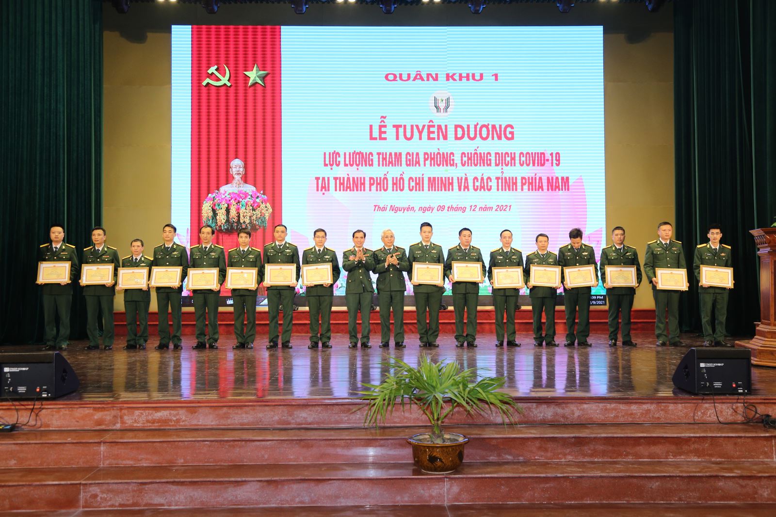 Tại lễ tuyên dương, Trung tướng Dương Đình Thông, Bí thư Đảng ủy, Chính ủy Quân khu trao bằng khen của Bộ trưởng Bộ Quốc phòng tặng 8 cá nhân tiêu biểu xuất sắc; Thiếu tướng Nguyễn Đình Chiêu, Phó chính ủy Quân khu và Thiếu tướng Lê Anh Tuấn, Phó tư lệnh Quân khu trao bằng khen của Bộ tư lệnh Quân khu tặng 31 cá nhân có thành tích xuất sắc trong thực hiện nhiệm vụ phòng chống dịch Covid-19 tại TP Hồ Chí Minh và các tỉnh phía Nam. Nhân dịp này, Quân khu trao quà của Ban Công đoàn Quốc phòng và Bộ tư lệnh Quân khu (mỗi suất 2 triệu đồng) cho 125 cá nhân tham gia lực lượng tăng cường cho TP Hồ Chí Minh và các tỉnh phía Nam.