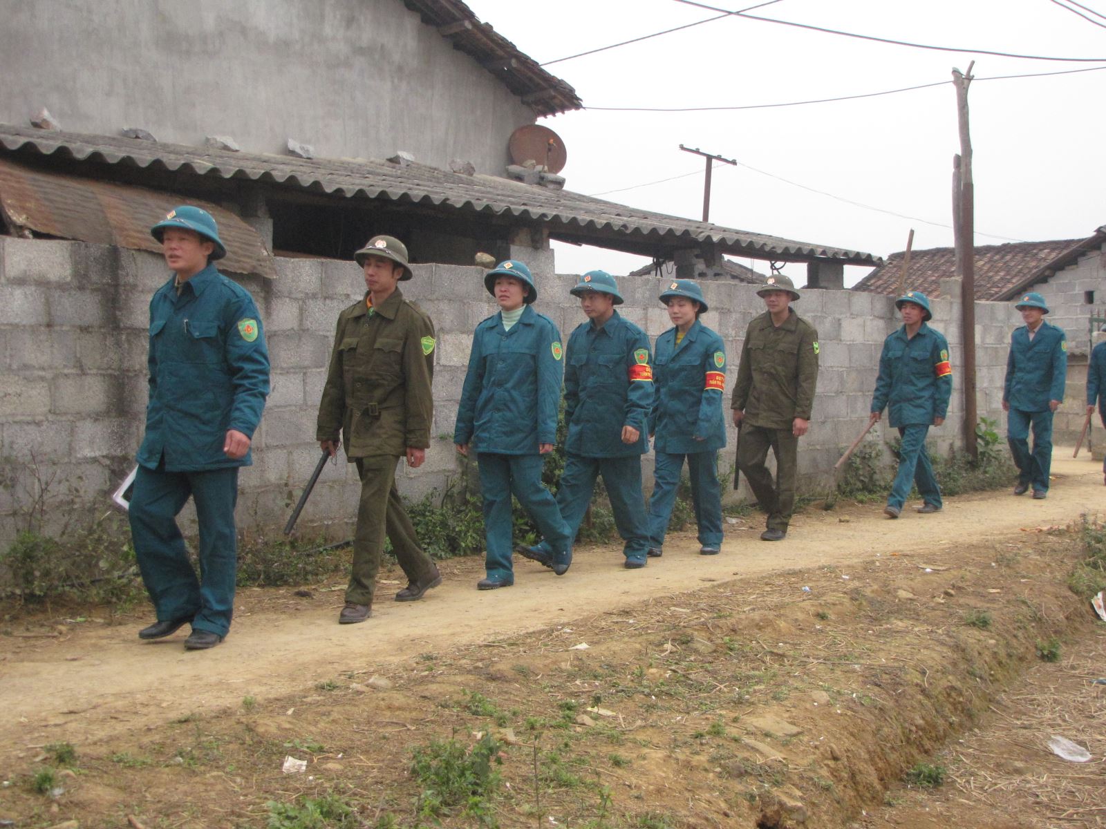 Dân quân xã Quốc Khánh phối hợp tuần tra địa bàn. Ảnh: Dương Nguyên