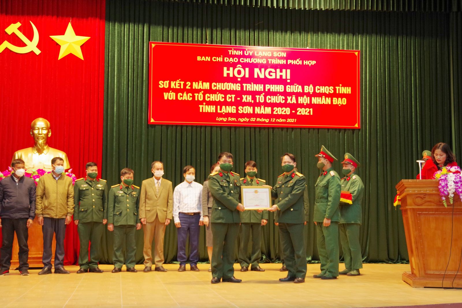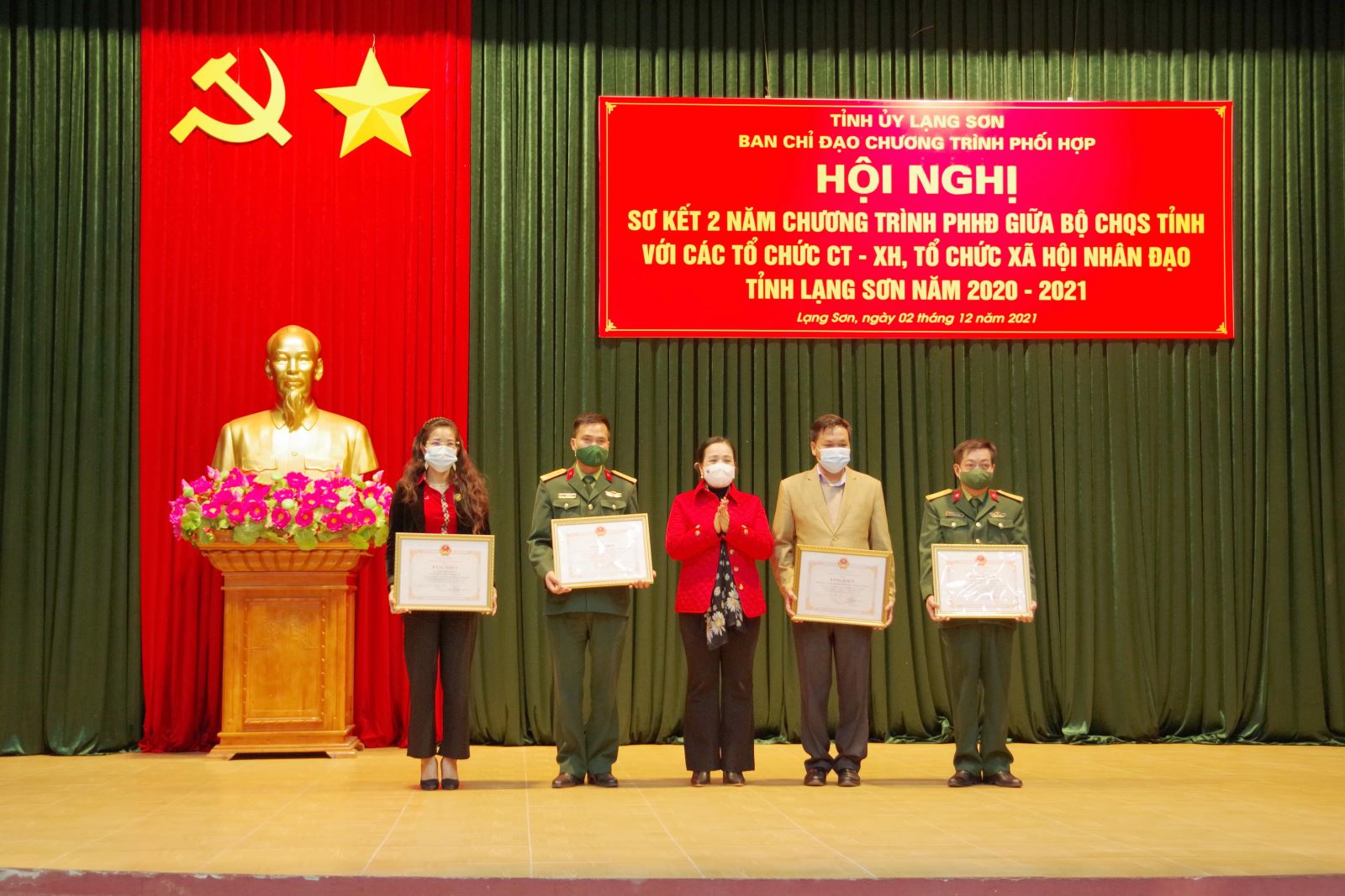 Tại hội nghị, 3 tập thể, 1 cá nhân được tặng bằng khen của Chủ tịch UBND tỉnh Lạng Sơn; 5 tập thể, 5 cá nhân được Ban chỉ đạo chương trình phối hợp tặng giấy khen vì đã có thành tích xuất sắc thực hiện chương trình phối hợp hoạt động giữa Bộ CHQS tỉnh với các tổ chức chính trị - xã hội, tổ chức xã hội nhân đạo năm 2020-2021.
