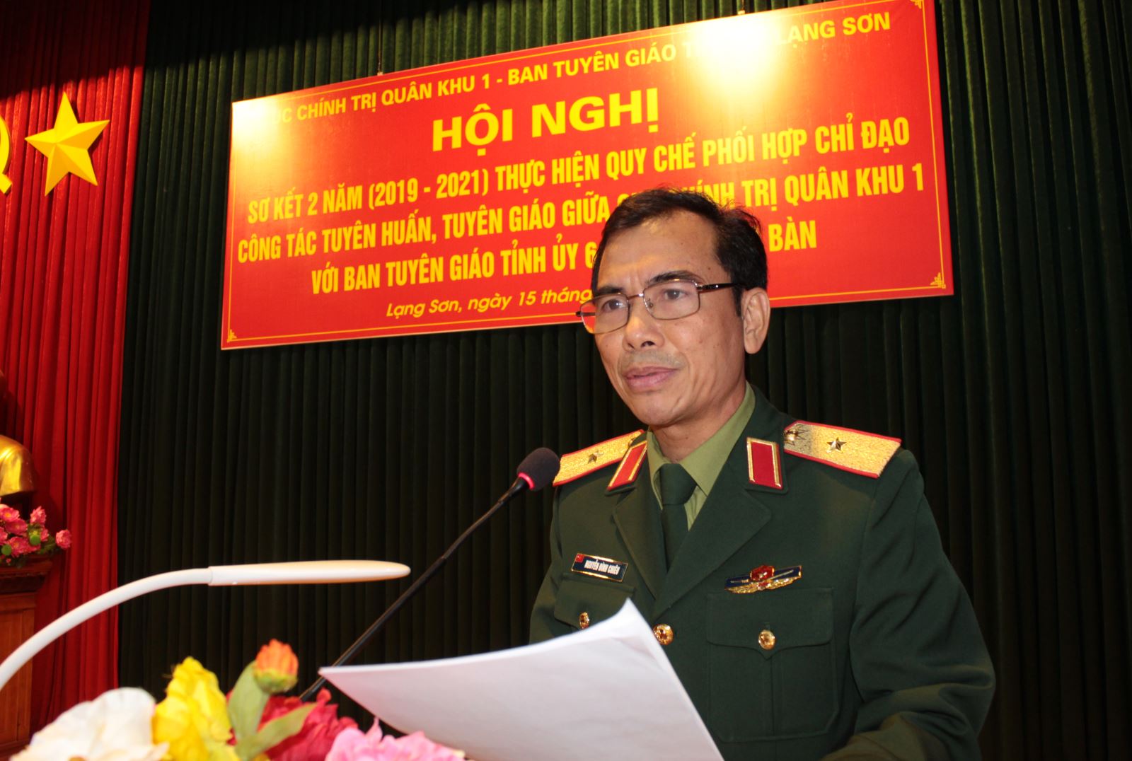 Ngày 15-11, tại Bộ CHQS tỉnh Lạng Sơn, Cục Chính trị Quân khu phối hợp với Ban Tuyên giáo Tỉnh ủy Lạng Sơn tổ chức Hội nghị sơ kết 2 năm thực hiện Quy chế phối hợp chỉ đạo công tác tuyên huấn, tuyên giáo giữa Cục Chính trị Quân khu với Ban Tuyên giáo Tỉnh ủy 6 tỉnh trên địa bàn (2019 - 2021). Đồng chí Phạm Xuân Thủy, Phó trưởng Ban Tuyên giáo Trung ương; Thiếu tướng Nguyễn Đình Chiêu, Phó chính ủy Quân khu dự và phát biểu chỉ đạo; đồng chí Hoàng Văn Nghiệm, Phó Bí thư Thường trực Tỉnh ủy, Trưởng đoàn ĐBQH tỉnh Lạng Sơn và đồng chí Dương Xuân Huyên, Phó chủ tịch Thường trực UBND tỉnh Lạng Sơn dự hội nghị.