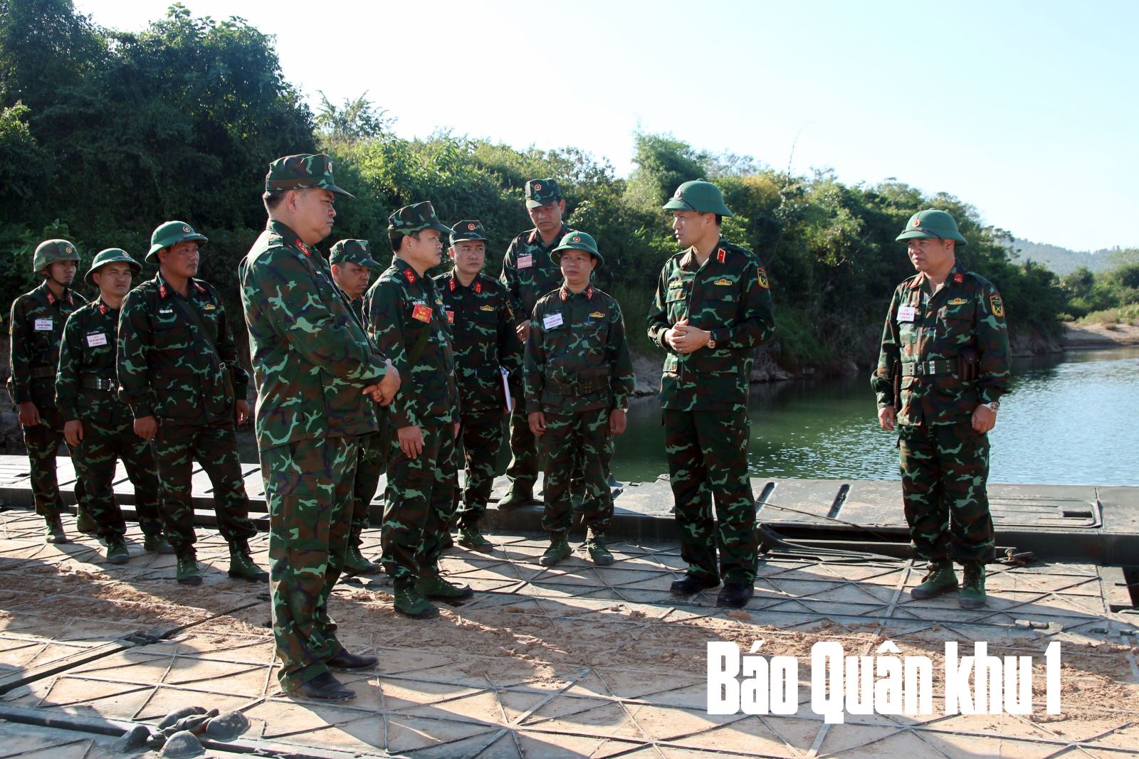 Kiểm tra Lữ đoàn Công binh 575 thực hành bắc cầu phao bảo đảm cho các lực lượng vượt sông tiến công địch trong diễn tập.