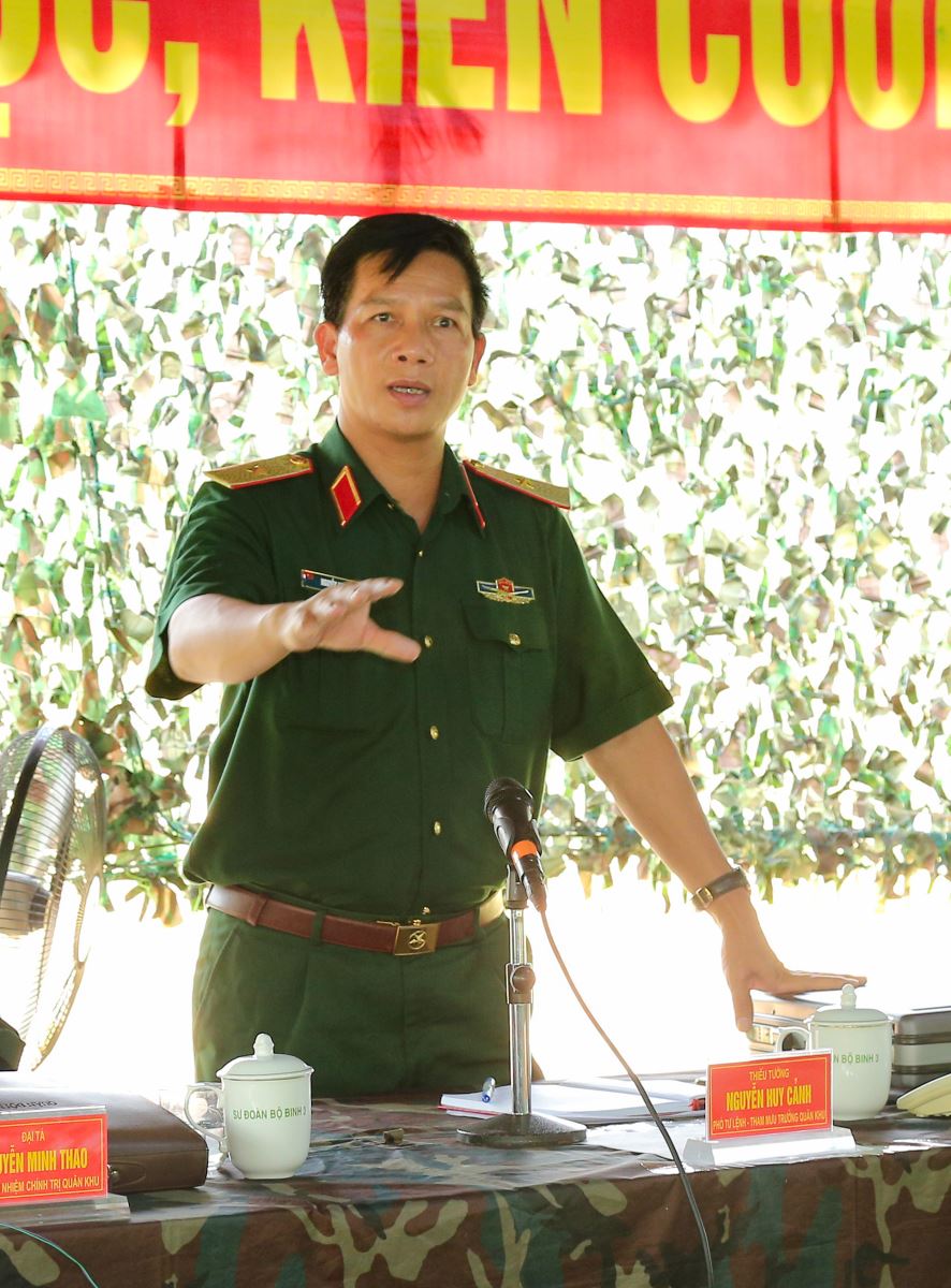 Phát biểu chỉ đạo diễn tập, Thiếu tướng Nguyễn Huy Cảnh, Phó Tư lệnh - Tham mưu trưởng Quân khu biểu dương sự cố gắng khắc phục khó khăn về thời tiết, làm tốt công tác chuẩn bị, cũng như tinh thần trách nhiệm, ý thức địch tình trong luyện tập của cán bộ, chiến sĩ đơn vị; đồng thời yêu cầu đơn vị cần tiếp tục phát huy kết quả đạt được, tổ chức huấn luyện chặt chẽ, tăng cường tổ chức luyện tập cho các khung tập cấp trung đoàn, tiểu đoàn trực thuộc... tạo tiền đề vững chắc cho đợt diễn tập có sử dụng thực binh bắn đạn thật đạt kết quả tốt và bảo đảm an toàn tuyệt đối.