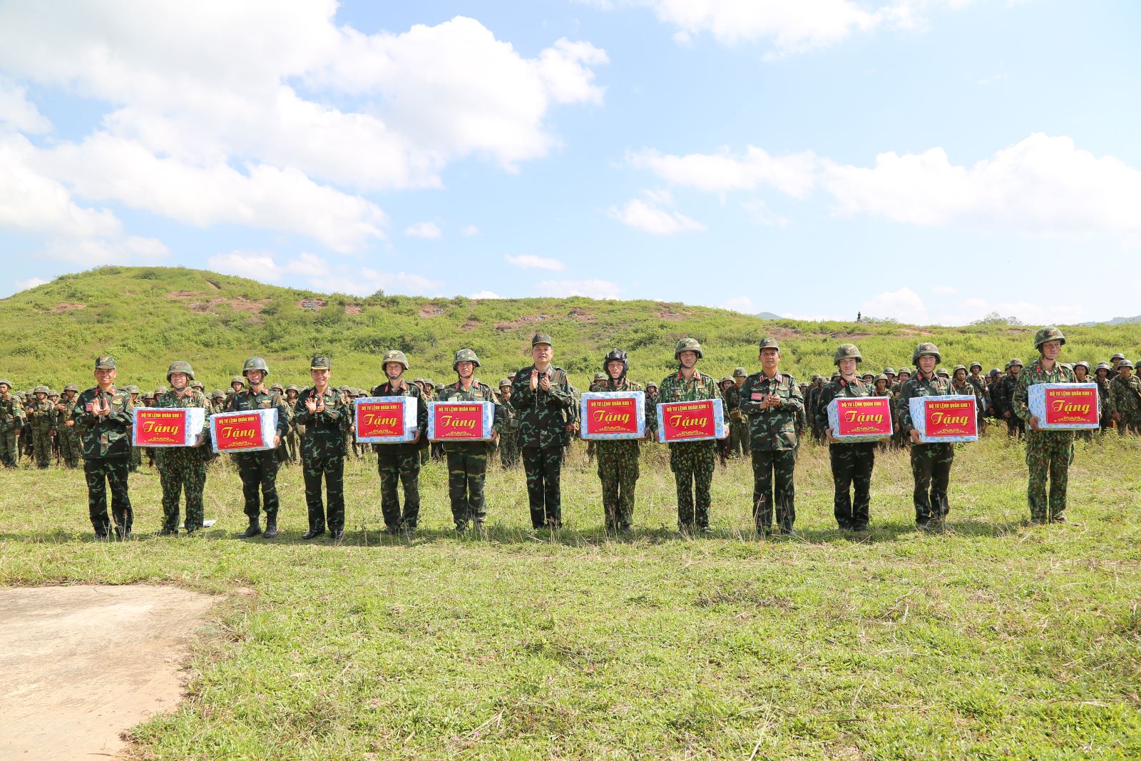 Thủ trưởng Bộ tư lệnh Quân khu tặng quà chúc mừng các đơn vị hoàn thành tốt nhiệm vụ diễn tập.