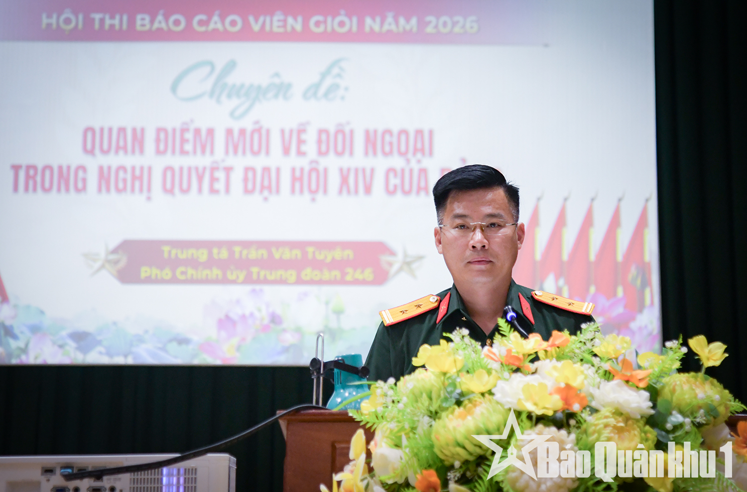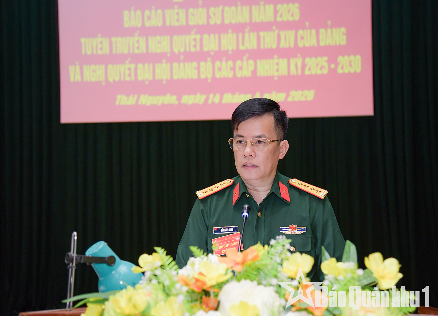 Sáng 14-4, Sư đoàn 346 tổ chức khai mạc hội thi báo cáo viên giỏi cấp Sư đoàn năm 2026, tuyên truyền Nghị quyết Đại hội lần thứ XIV của Đảng và Nghị quyết Đại hội Đảng bộ các cấp nhiệm kỳ 2025-2030. Thiếu tướng Ngô Hồng Thái, Phó Chủ nhiệm Chính trị Quân khu dự và chỉ đạo hội thi.