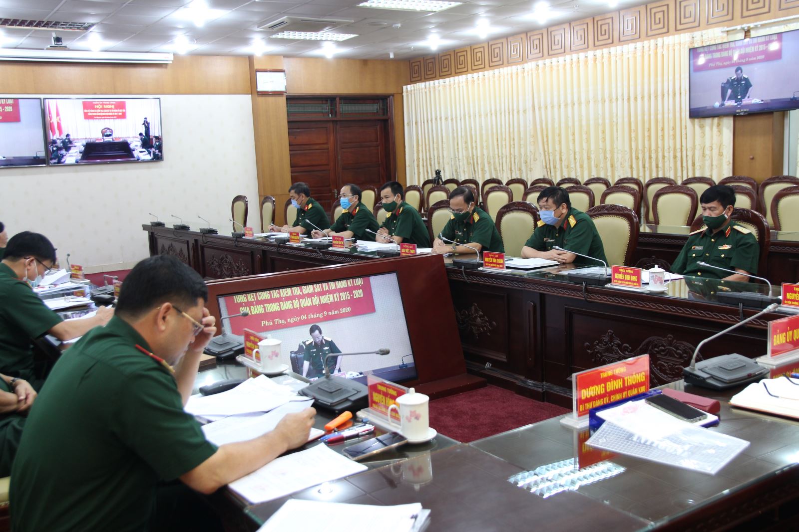 Trung tướng Dương Đình Thông, Bí thư Đảng ủy, Chính ủy Quân khu chủ trì tại điểm cầu Bộ tư lệnh Quân khu.