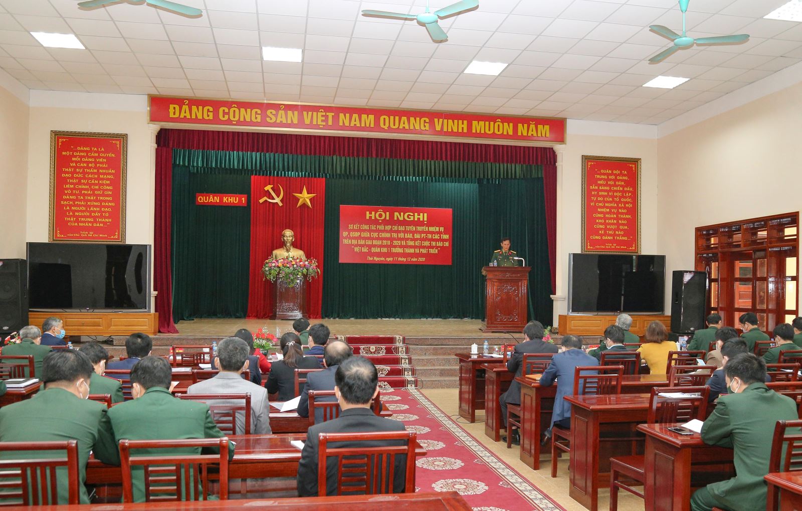 Sáng 11-12, Cục Chính trị Quân khu tổ chức Hội nghị sơ kết công tác phối hợp chỉ đạo tuyên truyền nhiệm vụ QP, QSĐP giữa Cục Chính trị với cơ quan Báo, Đài phát thanh - Truyền hình các tỉnh trên địa bàn Quân khu giai đoạn 2018 - 2020 và tổng kết cuộc thi báo chí “Việt Bắc - Quân khu 1 trưởng thành và phát triển”. Thiếu tướng Nguyễn Đình Chiêu, Phó Chính ủy Quân khu, Trưởng ban Tổ chức Cuộc thi báo chí “Việt Bắc - Quân khu 1 trưởng thành và phát triển” dự và chỉ đạo hội nghị. Cùng dự có đại biểu lãnh đạo Báo Quân đội nhân dân; đại biểu lãnh đạo các cơ quan Báo, Đài phát thanh – truyền hình 6 tỉnh trên địa bàn; lãnh đạo Hội Nhà báo tỉnh Thái Nguyên; đại biểu Báo Nhân Dân; đại biểu thủ trưởng 4 cơ quan Quân khu; lãnh đạo, chỉ huy, cơ quan chính trị các đầu mối đơn vị trực thuộc Quân khu; cùng các tập thể, cá nhân được khen thưởng và đạt giải cuộc thi báo chí.