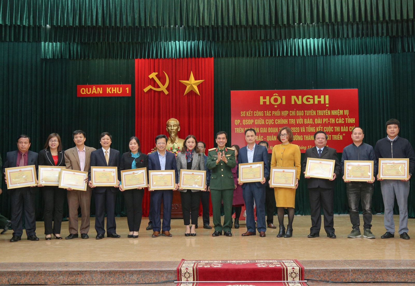 Nhân dịp này, Bộ tư lệnh Quân khu đã tặng bằng khen cho 12 tập thể, 6 cá nhân vì đã có thành tích xuất sắc trong phối hợp chỉ đạo và thực hiện công tác tuyên truyền nhiệm vụ QP, QSĐP giai đoạn 2018 - 2020. Trao 1 giải A; 1 giải B; 3 giải C và 6 giải Khuyến khích ở các loại hình báo in, báo điện tử và truyền hình cho các nhóm tác giả và tác giả có tác phẩm xuất sắc tham gia cuộc thi báo chí “Việt Bắc - Quân khu 1 trưởng thành và phát triển”.