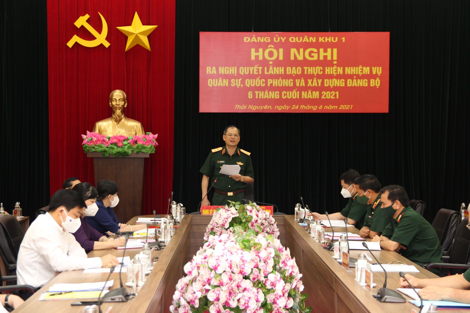 Sáng 24-6, Đảng ủy Quân khu tổ chức Hội nghị ra nghị quyết lãnh đạo thực hiện nhiệm vụ quân sự, quốc phòng (QS, QP) và xây dựng Đảng bộ 6 tháng cuối năm 2021. Dự hội nghị có các đồng chí trong Đảng ủy Quân khu, các đồng chí Bí thư Tỉnh ủy các tỉnh trên địa bàn tham gia Đảng ủy Quân khu, Chính ủy Bộ CHQS các tỉnh, đại diện một số phòng chức năng của Quân khu. Trung tướng Dương Đình Thông, Bí thư Đảng ủy, Chính ủy Quân khu chủ trì hội nghị.