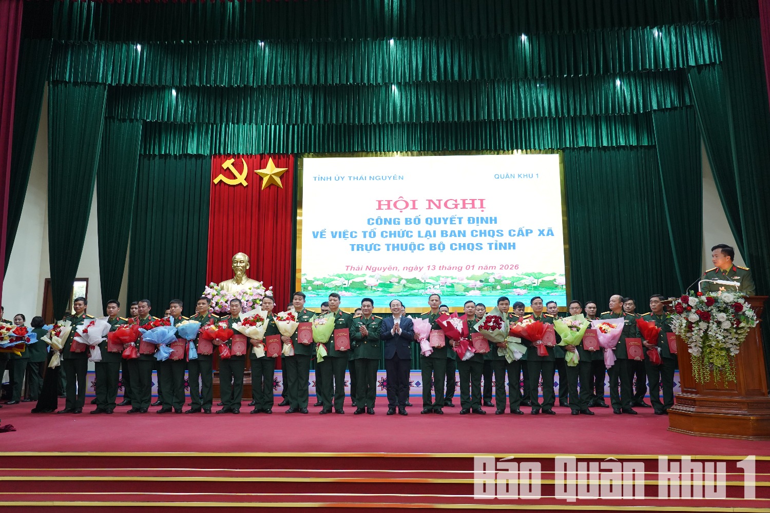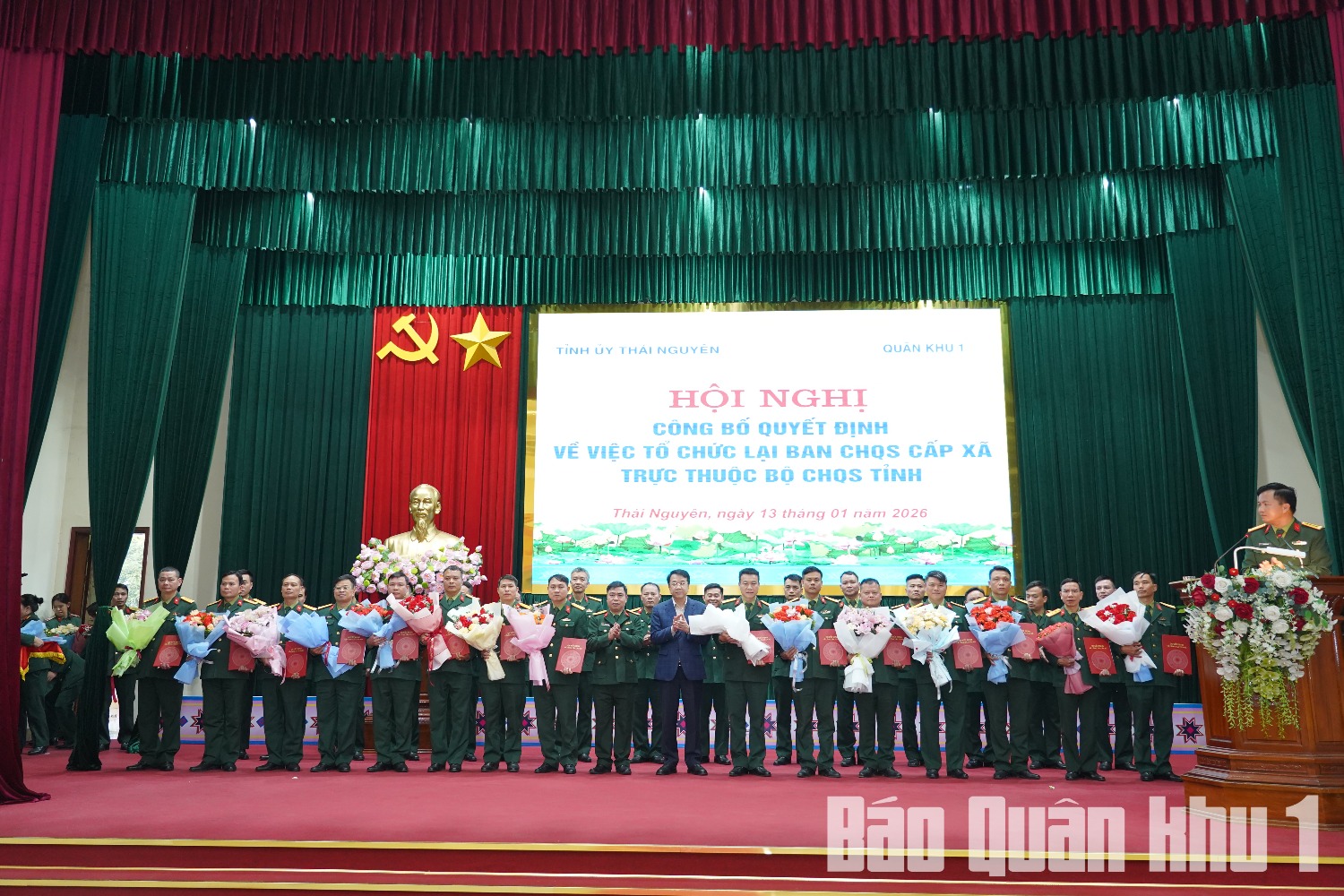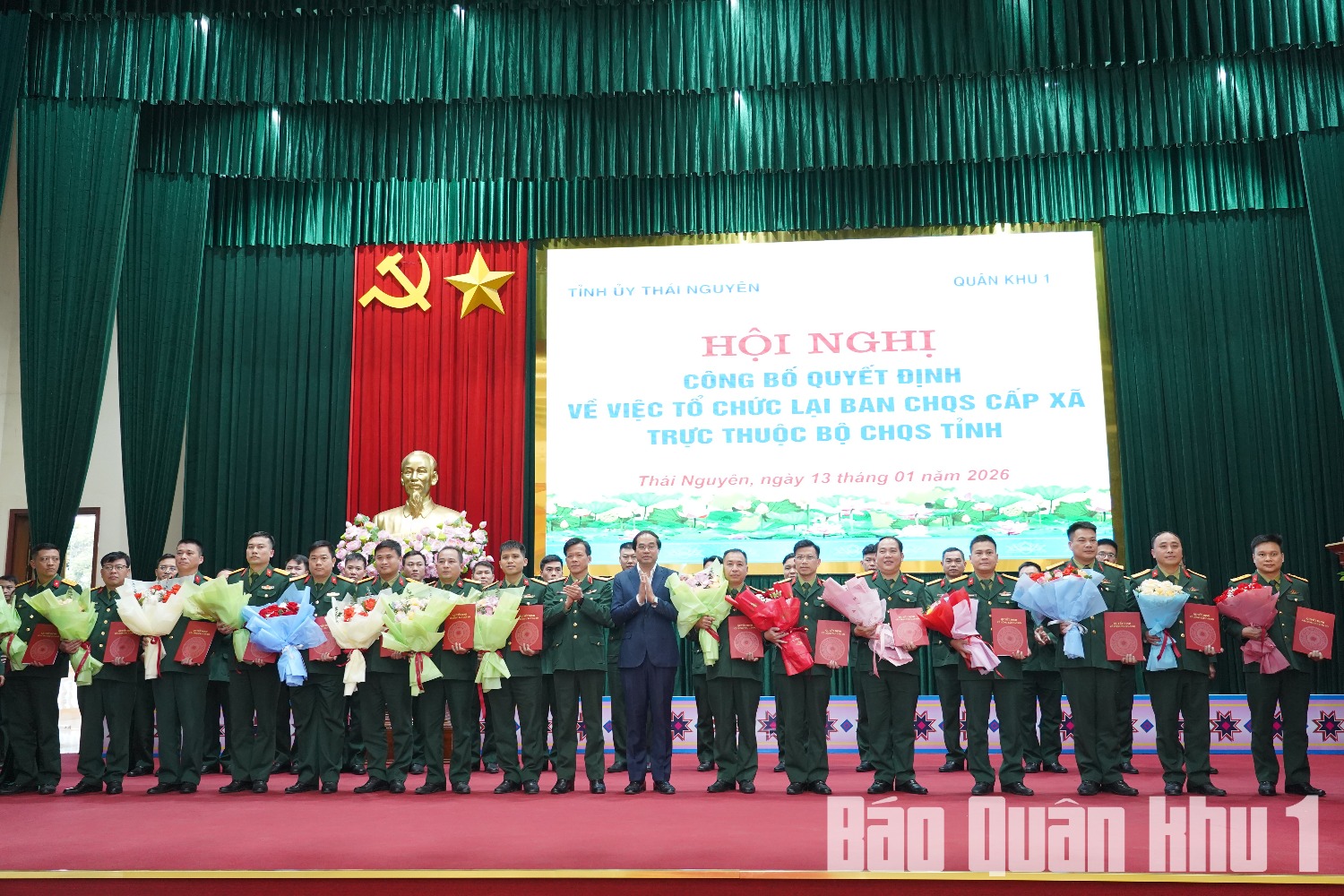 Chiều 13-1, Tỉnh ủy Thái Nguyên phối hợp với Quân khu tổ chức Hội nghị công bố quyết định tổ chức lại Ban CHQS cấp xã trực thuộc Bộ CHQS tỉnh Thái Nguyên. Thiếu tướng Đàm Minh Tuân, Phó Tư lệnh Quân khu dự và chỉ đạo hội nghị. Dự hội nghị có: đồng chí Trịnh Xuân Trường, Bí thư Tỉnh ủy, Bí thư Đảng ủy Quân sự tỉnh Thái Nguyên; đồng chí Nguyễn Đăng Bình, Phó Bí thư Thường trực Tỉnh ủy, Chủ tịch HĐND tỉnh Thái Nguyên; các đồng chí trong Ban Thường vụ Tỉnh ủy, lãnh đạo các sở, ban, ngành và 92 đồng chí Bí thư xã, phường trên địa bàn toàn tỉnh.