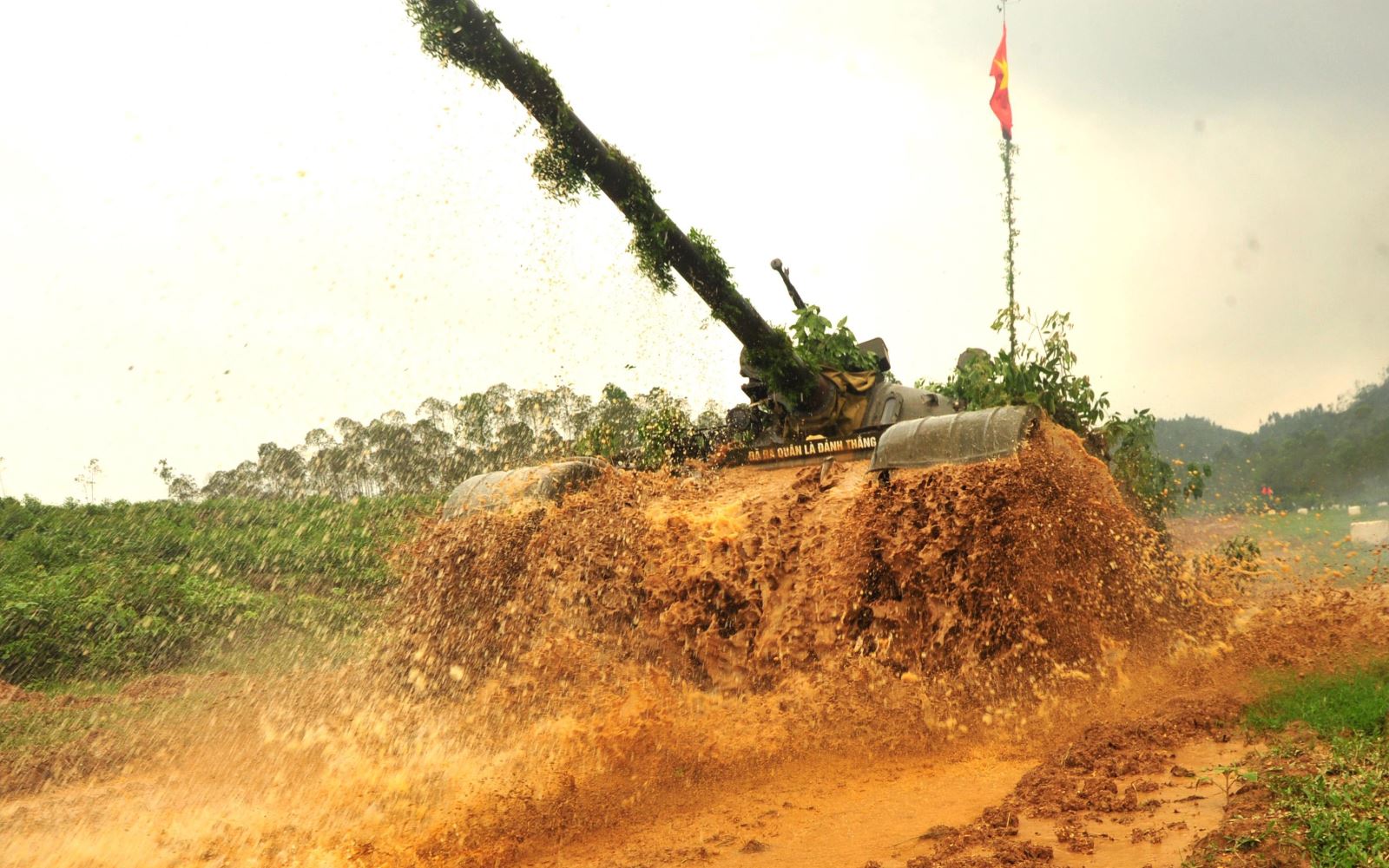 Từ nơi ẩn nấp, trung đội xe tăng nổ máy rền vang, ầm ầm lao ra trận địa. Bên trong xe, với thao tác nhanh, gọn, chính xác của pháo thủ chọn phần tử bắn và kết thúc phát bắn; kỹ năng nạp đạn nhanh, chính xác của pháo thủ số 2 được thực hiện nhuần nhuyễn; khẩu lệnh dõng dạc, dứt khoát của trưởng xe qua vô tuyến điện. Cờ Tổ quốc bay trên nóc xe cùng khí thế của những người lính đưa những chiếc xe tăng lao về phía trước vượt qua gò cao, nhanh chóng chiếm lĩnh trận địa và dùng hỏa lực tấn công địch… khiến không khí thao trường thật sôi động.