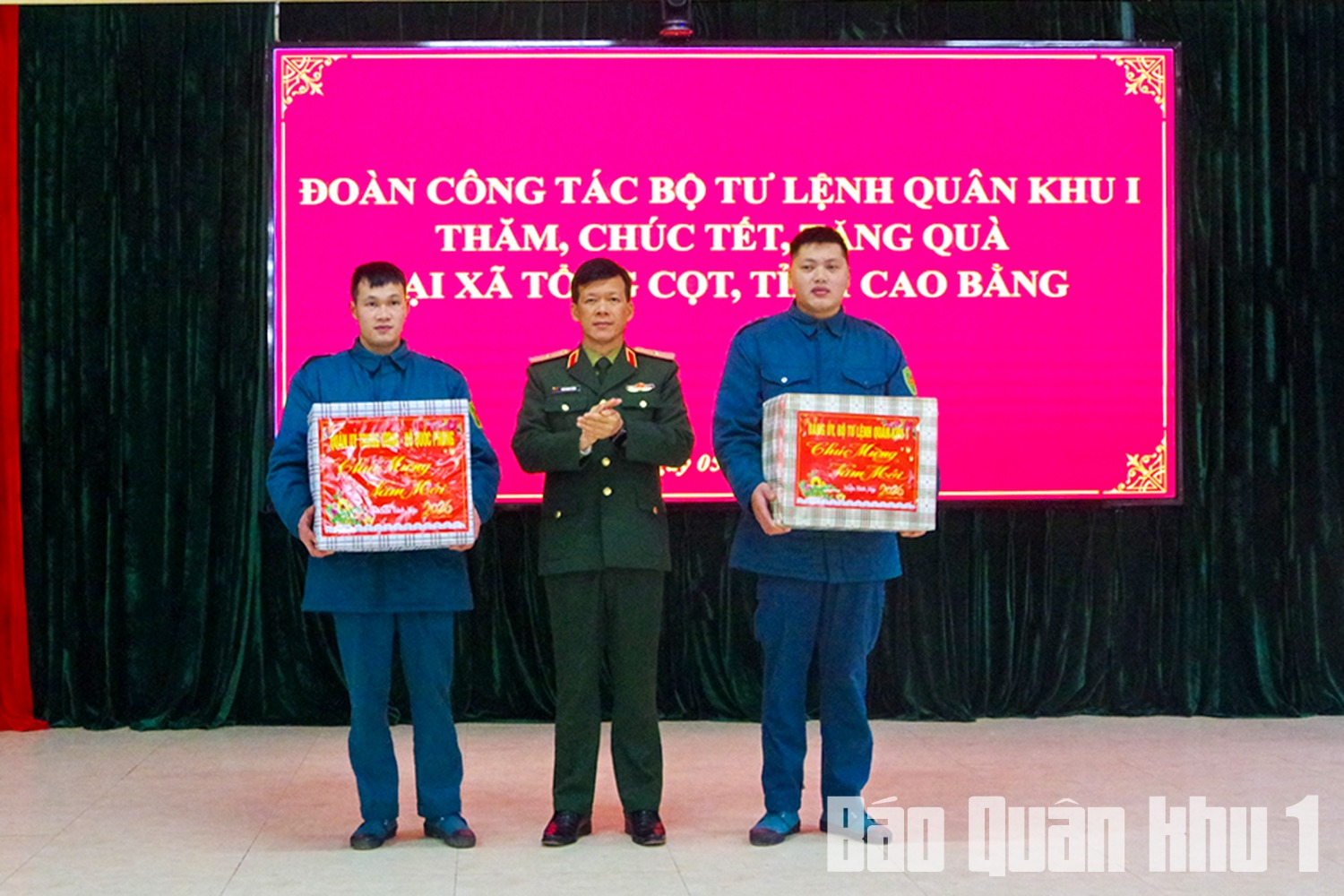 Thiếu tướng Đàm Minh Tuân, Phó Tư lệnh Quân khu đã trao quà của Quân ủy Trung ương, Bộ Quốc phòng và quà của Đảng ủy, Bộ Tư lệnh Quân khu tặng Tiểu đội Dân quân thường trực xã Tổng Cọt (Cao Bằng).